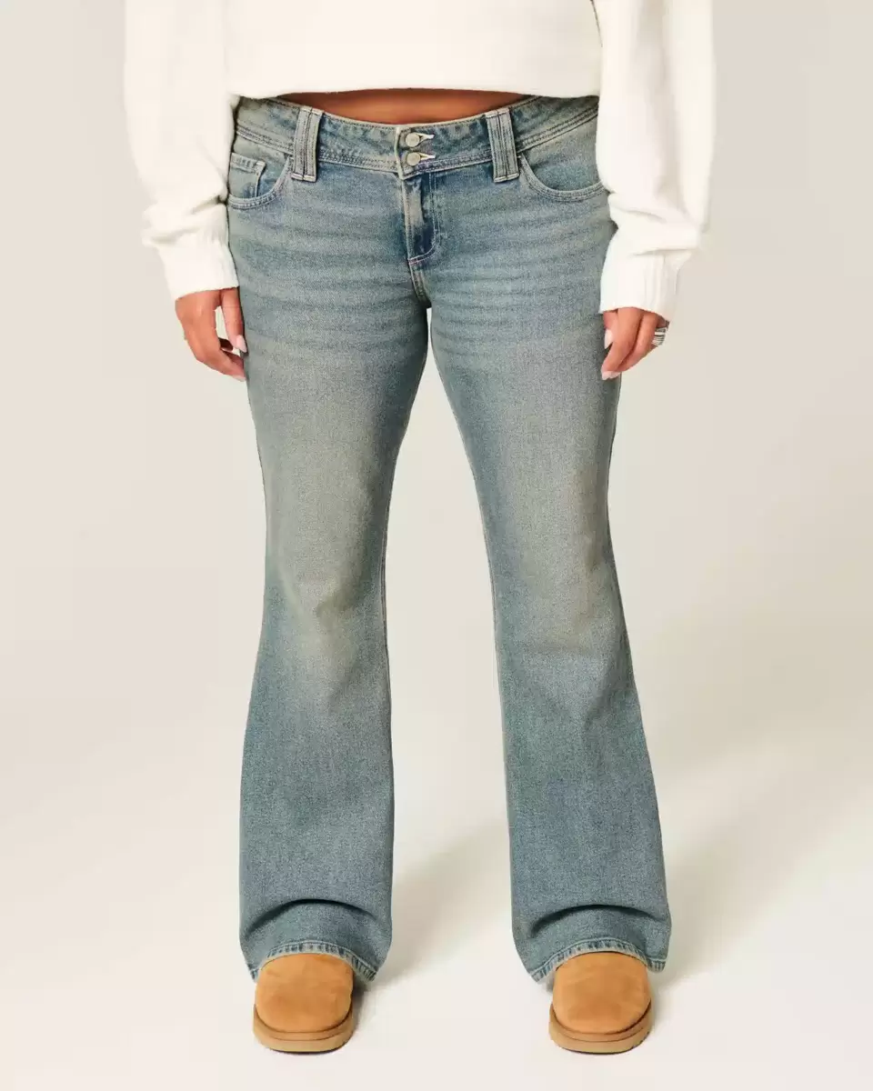 Bekväma denimjeans i medeltvätt, designade med en smickrande låg midja och bootcut-fåll. Blekning, morrhår, Vintage Stretch-denim, bakfickor med fjärilsbroderi. Importerad.