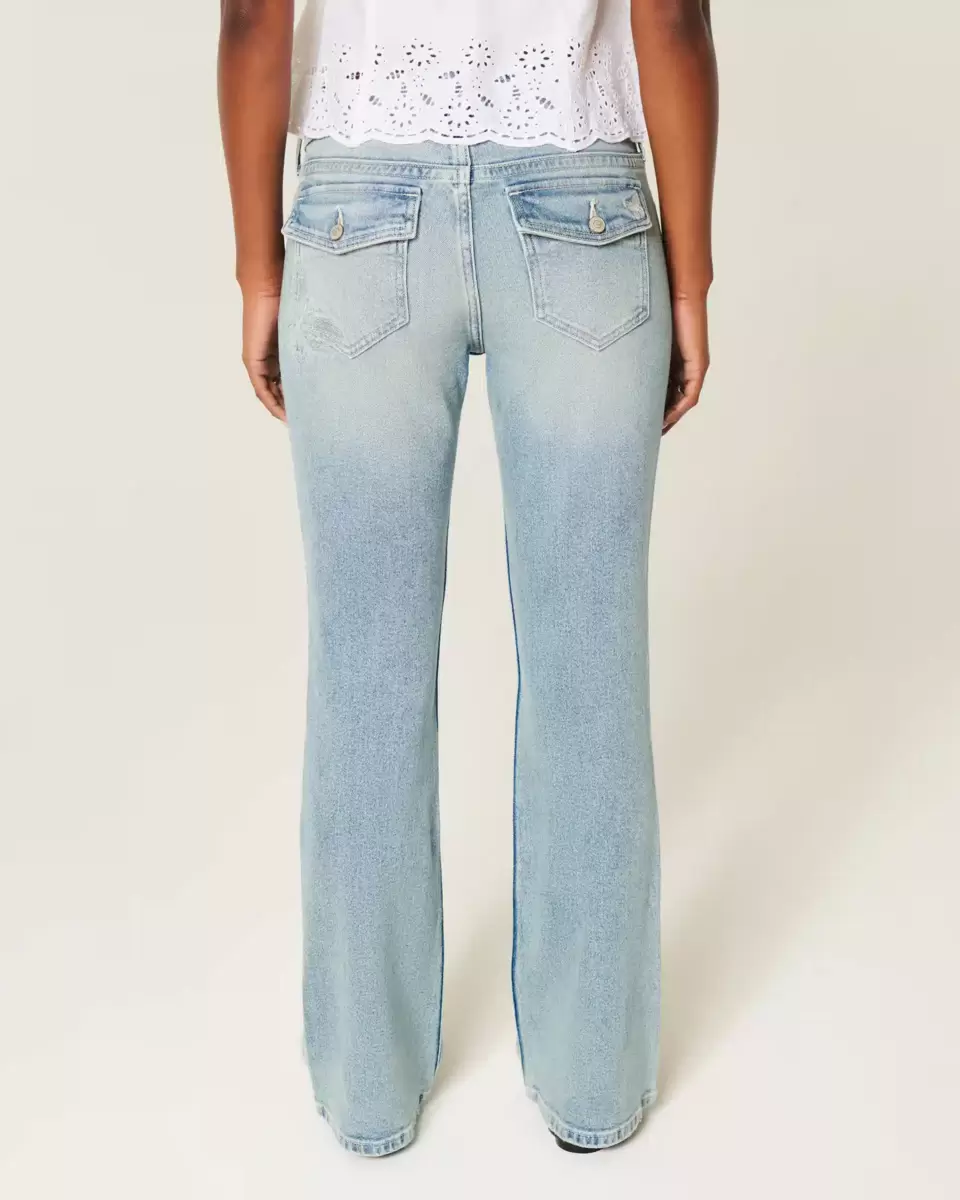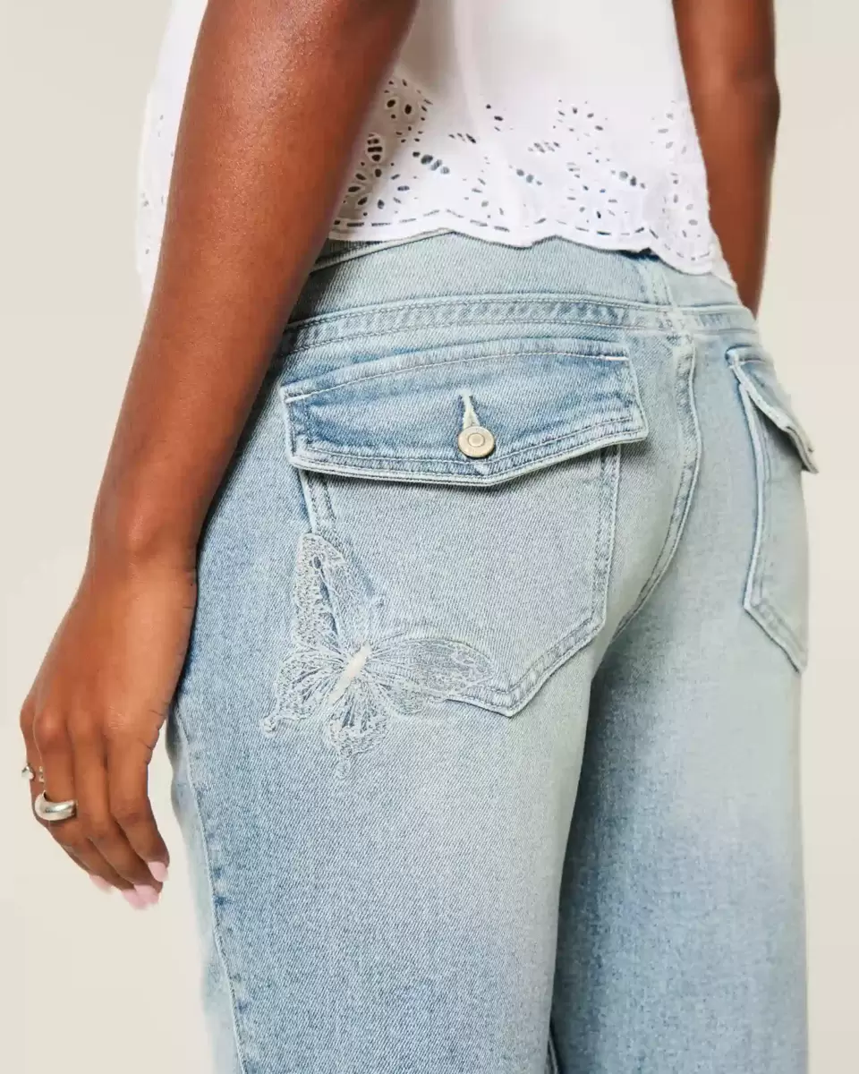 Bekväma jeans i Vintage Stretch-denim, designade med en låg midja och stövelfåll. Medium tvätt med blekning och morrhår, broderad fjärilsgrafik baktill. Importerad.