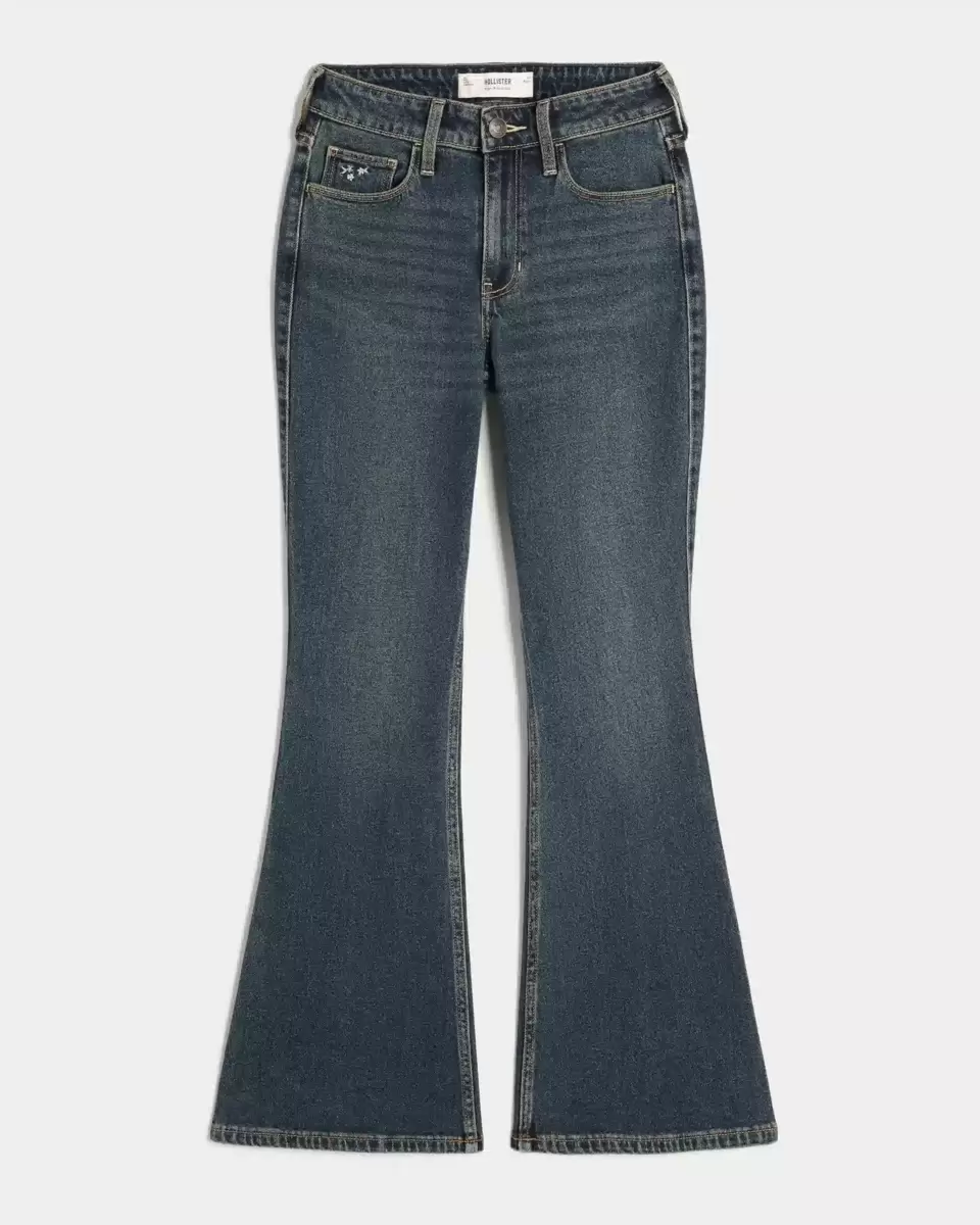 Bekväma jeans i mörk tvätt, designade med en smickrande hög midja, smala ben och utsvängd fåll. Blekning, morrhår, Vintage Stretch-denim, söta broderade blomdetaljer vid höger myntficka och bak. Importerad.