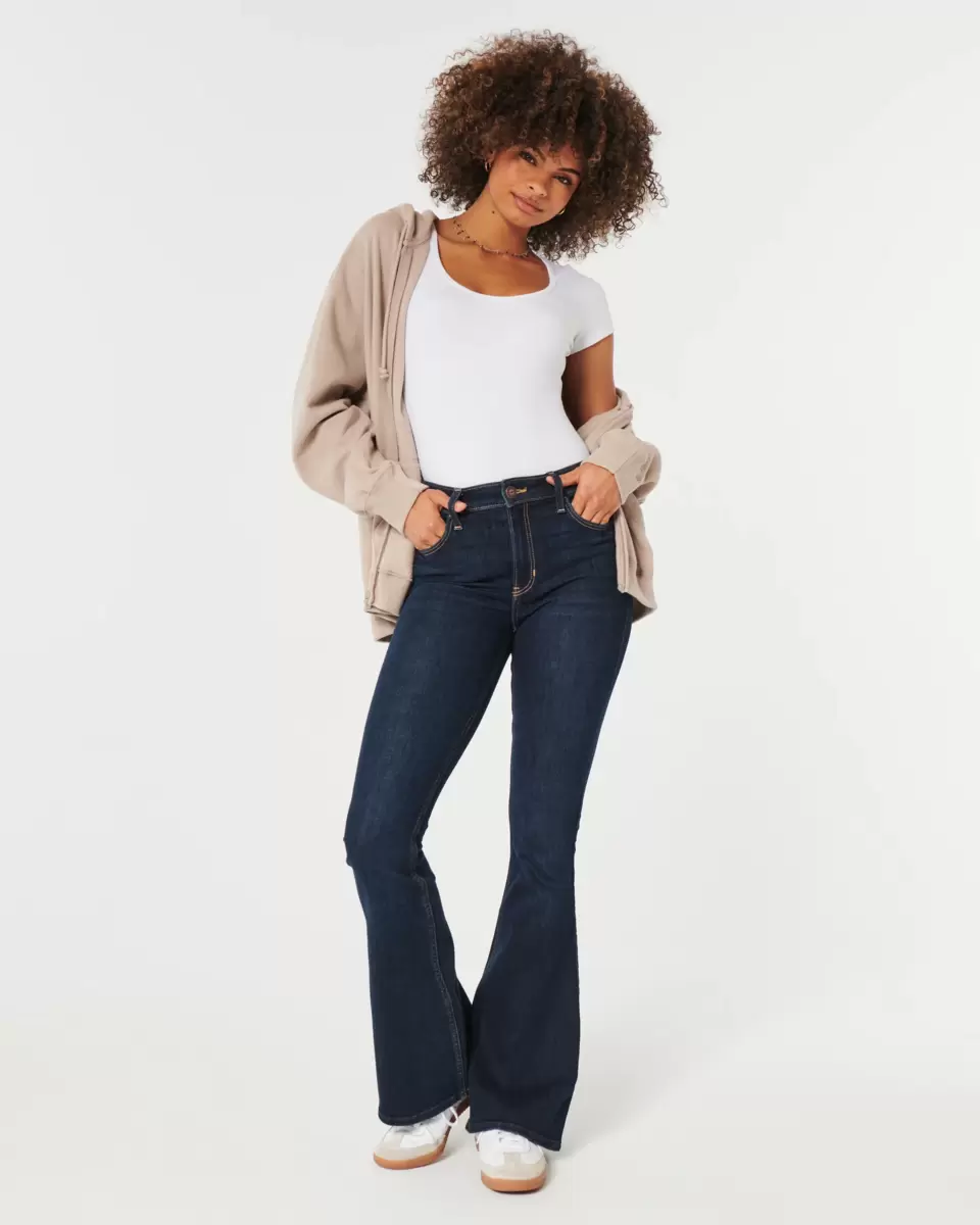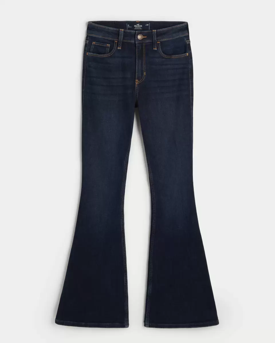 De här mörka jeansen är designade med en smickrande hög midja och har retroinspirerade utsvängda ben, subtil blekning och morrhår. Importerad.