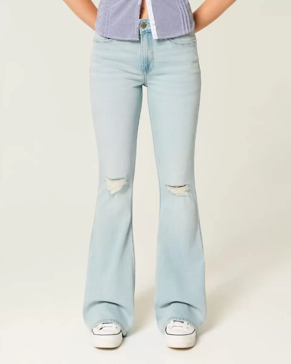 Bekväma jeans gjorda med Vintage Stretch-denim, designade med en smickrande hög midja, smala ben och utsvängd fåll. Lätt tvätt med blekning, morrhår och slitna detaljer. Importerad.