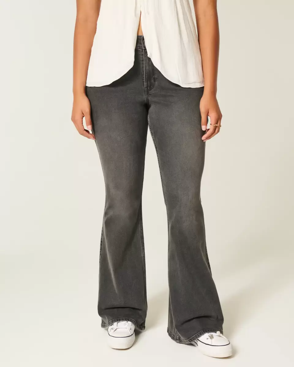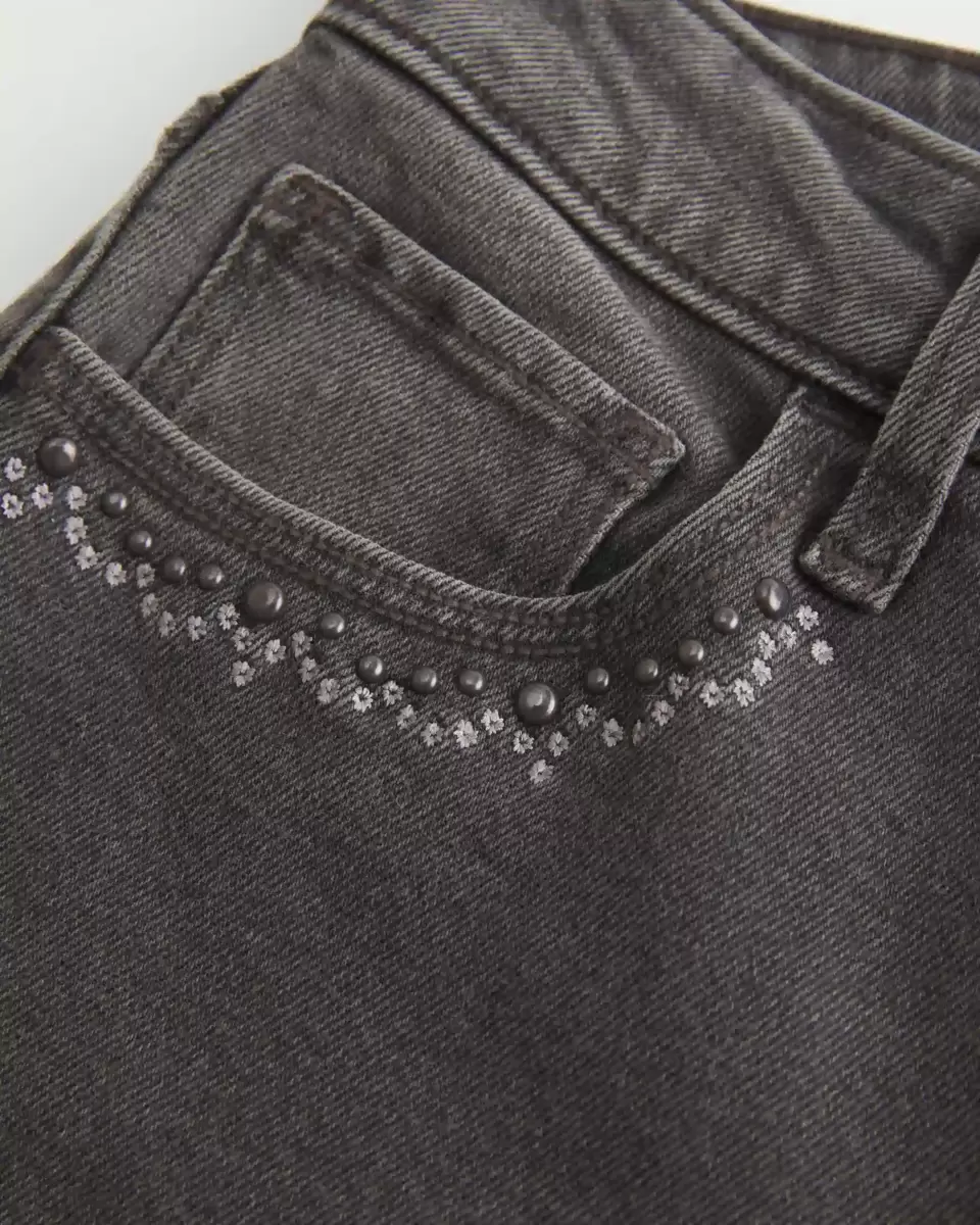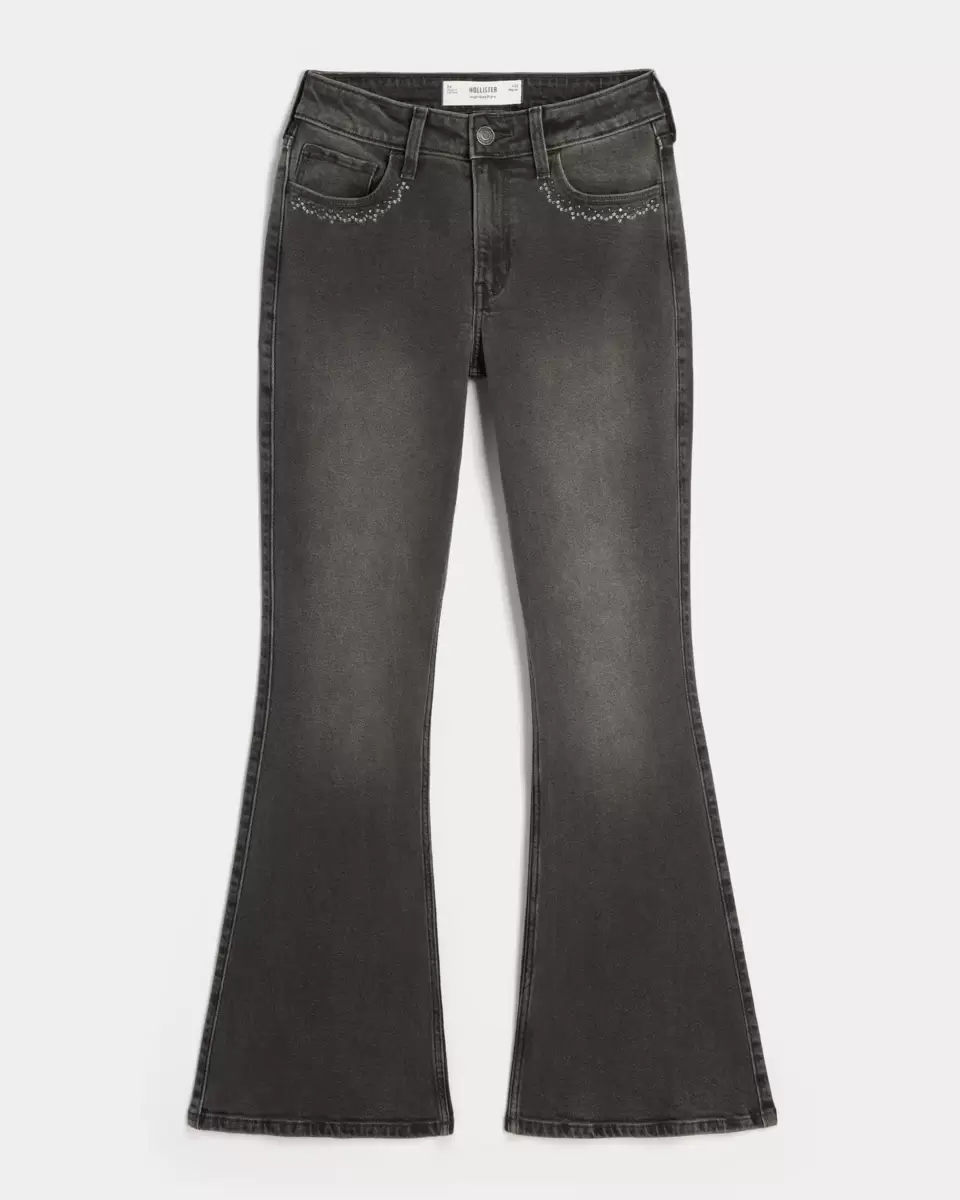 Bekväma jeans i Vintage Stretch-denim, designade med en smickrande hög midja och utsvängda ben. Broderade detaljer vid fickorna, tvättad svart med blekning. Importerad.