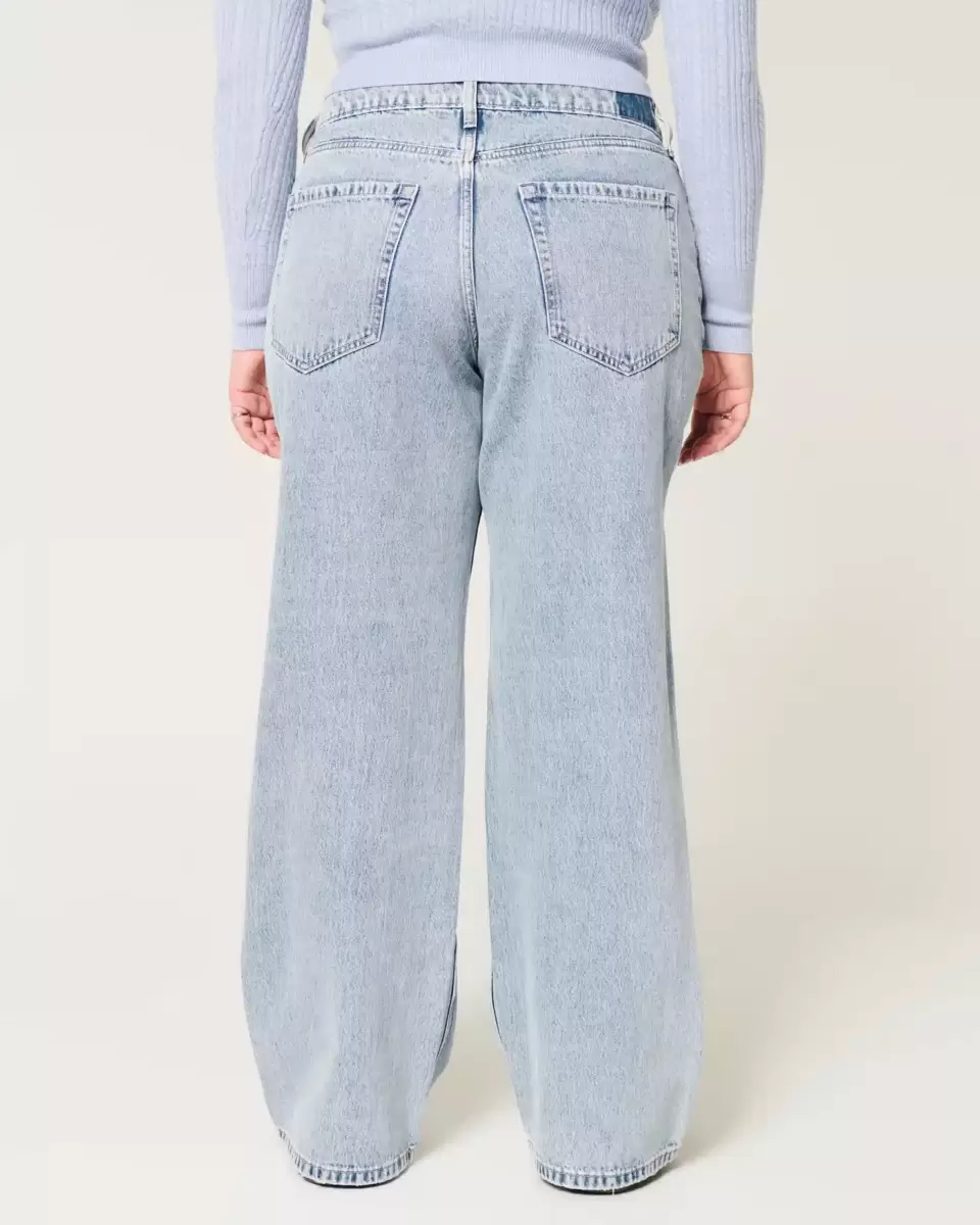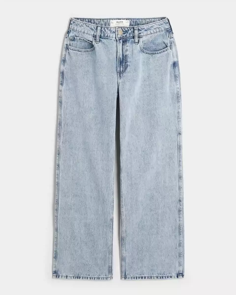 Designad med en medelhög midja och påsiga ben. Mellantvättad denim med blekning. Importerad.