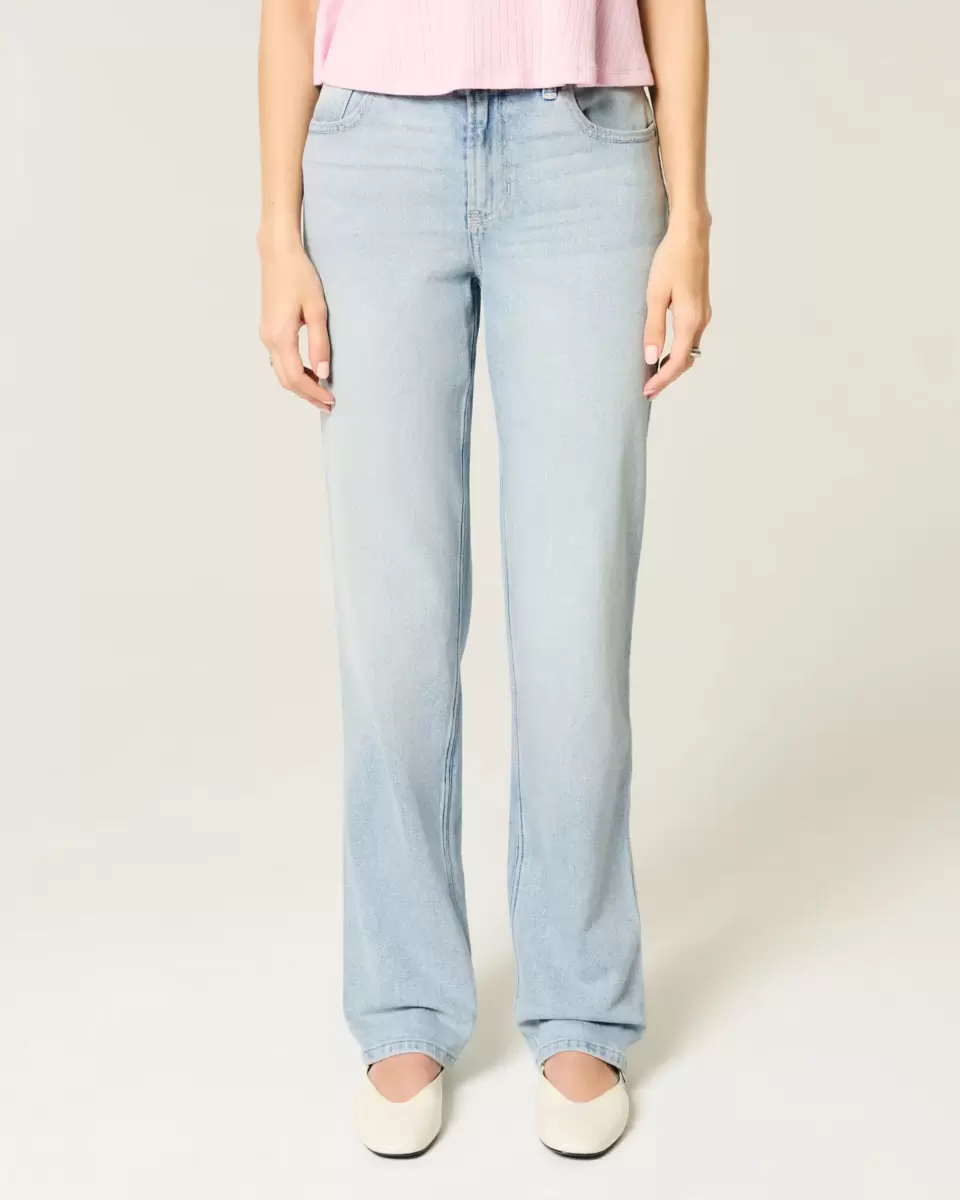 Bekväma jeans i lätt tvätt, designade med en smickrande hög midja och raka ben. Blekning, morrhår. Importerad.