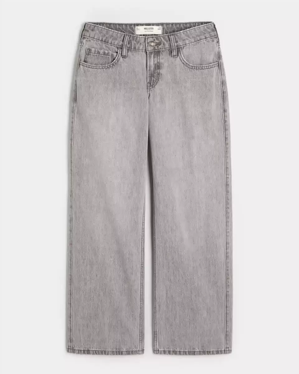 Söta och bekväma jeans i grått, designade med en smickrande låg midja och baggy ben.