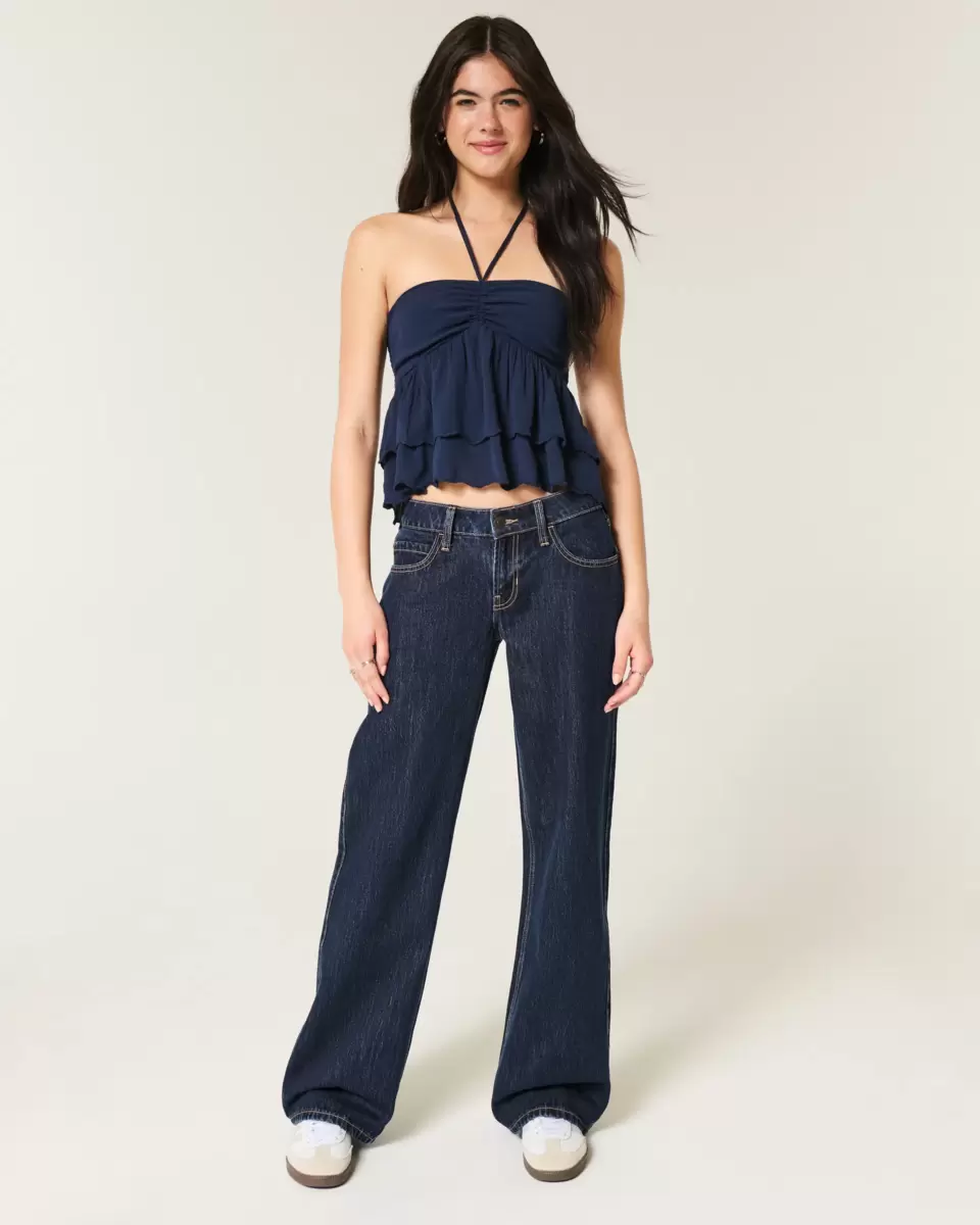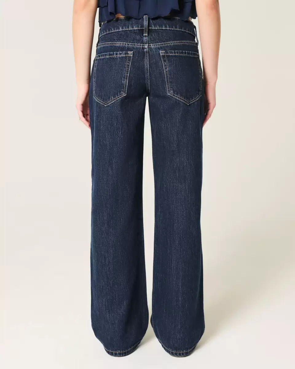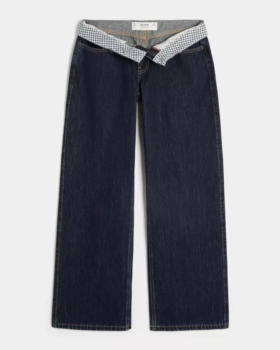 Bekväma denimjeans designade med en smickrande låg midja och baggy ben. Uppvikbar midjeband med invändigt mönster, mörk tvätt. Importerad.
