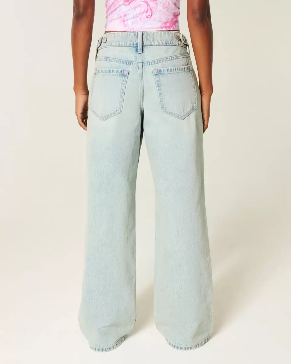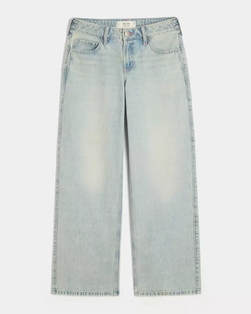 Bekväma jeans i lätt tvätt, designade med en justerbar låg midja och säckiga ben. Blekning, morrhår. Importerad.
