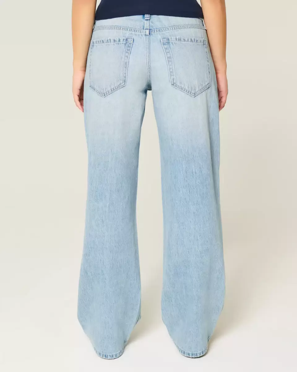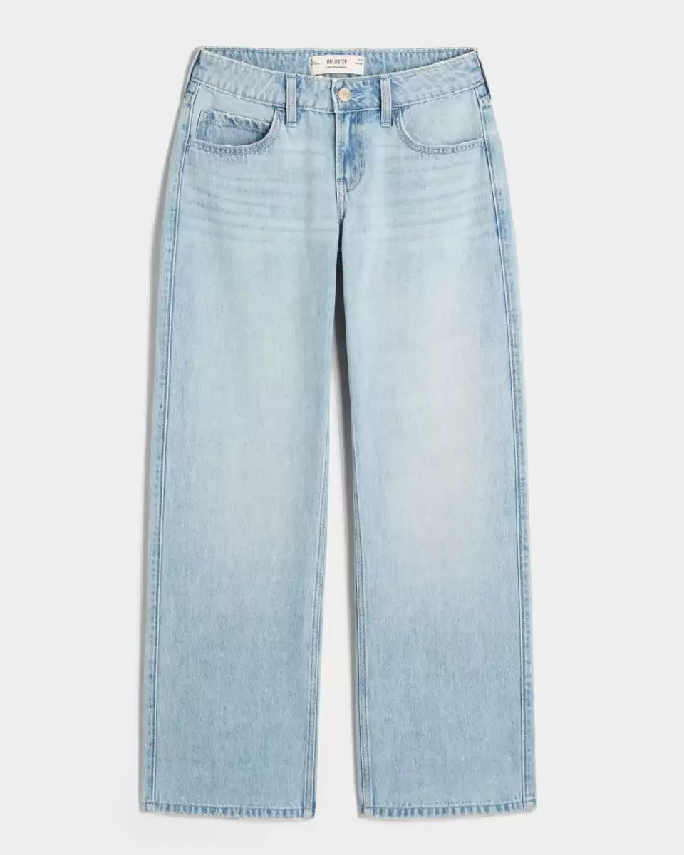 Bekväma denimjeans designade med en smickrande låg midja och baggy ben. Lätt tvätt med blekning och morrhår.