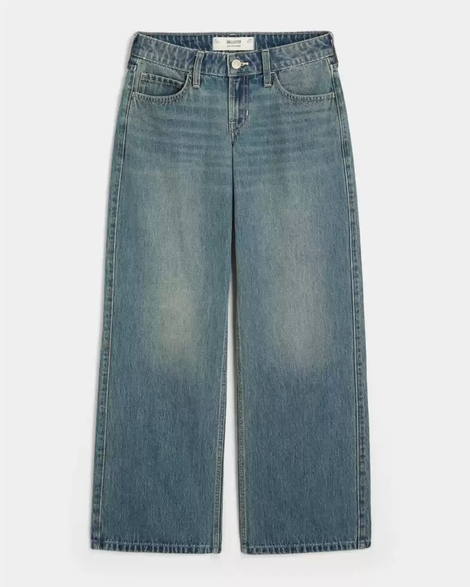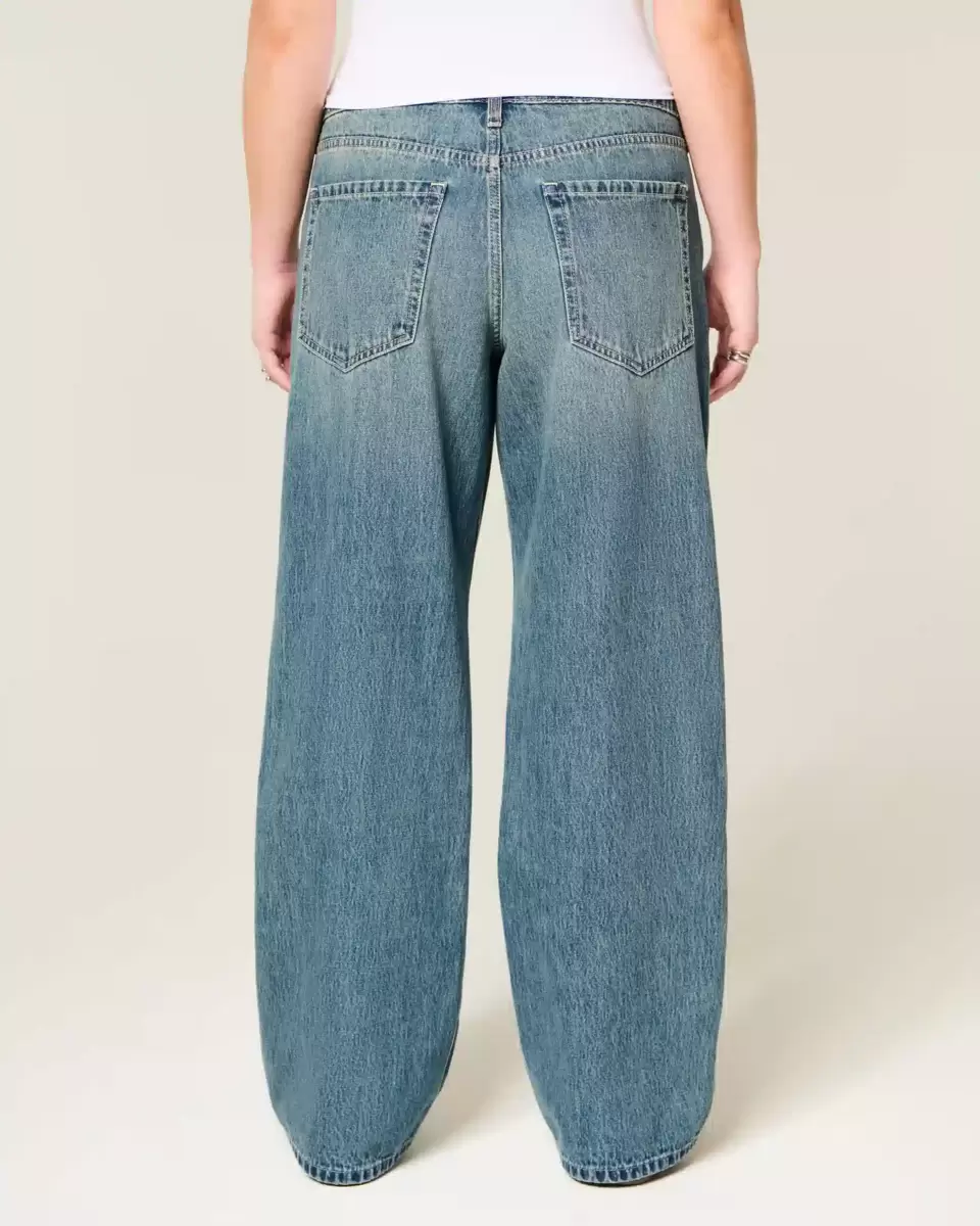 Bekväma jeans i medium tvätt, designade med en smickrande låg midja och säckiga ben. Blekning, morrhår. Importerad.