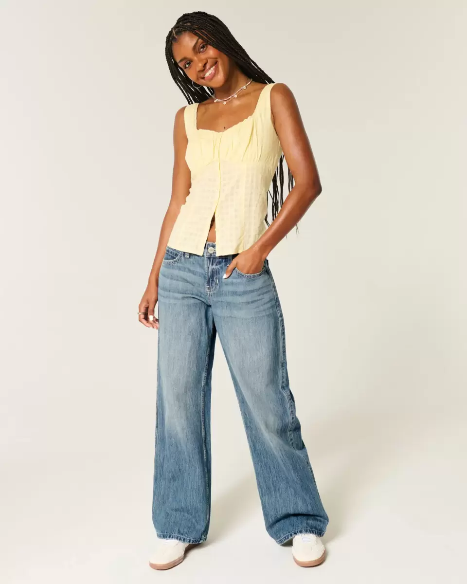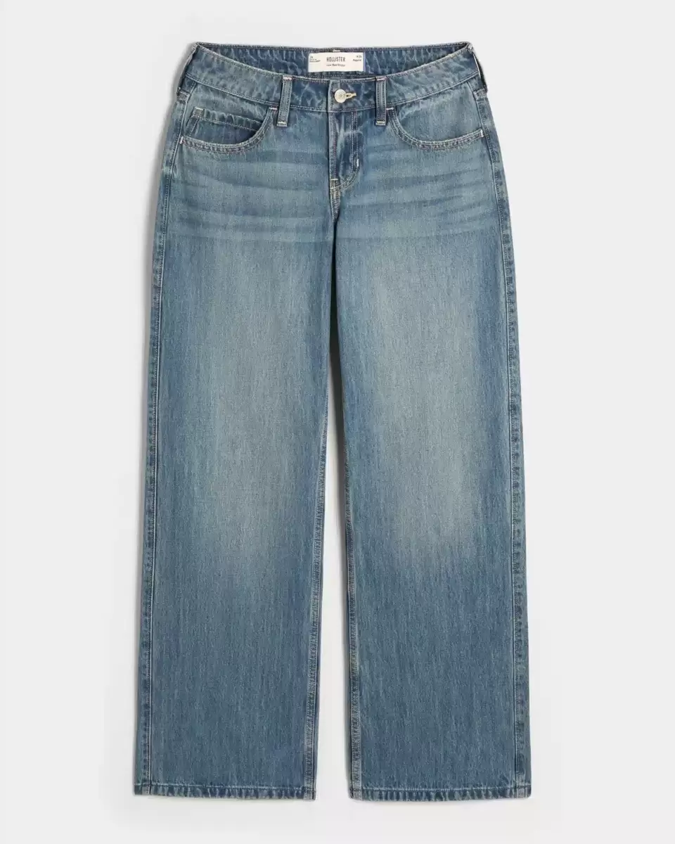 Bekväma jeans i medium tvätt, designade med säckiga ben och smickrande låg midja. Söt I Heart LA grafisk applikation på baksidan, bleknar, morrhår.