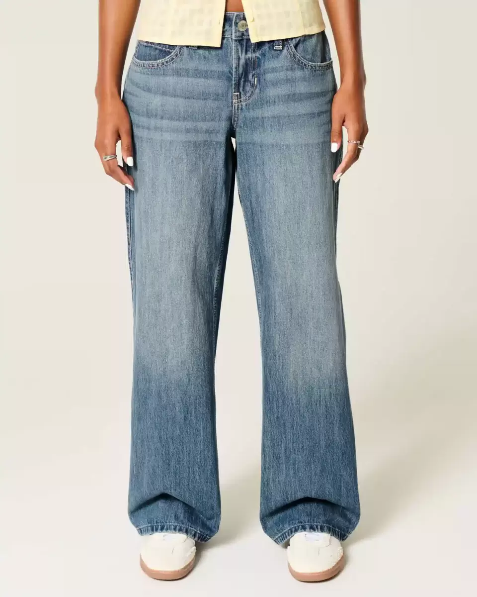 Low-Rise Medium Wash Los Angeles Graphic Baggy Jeans