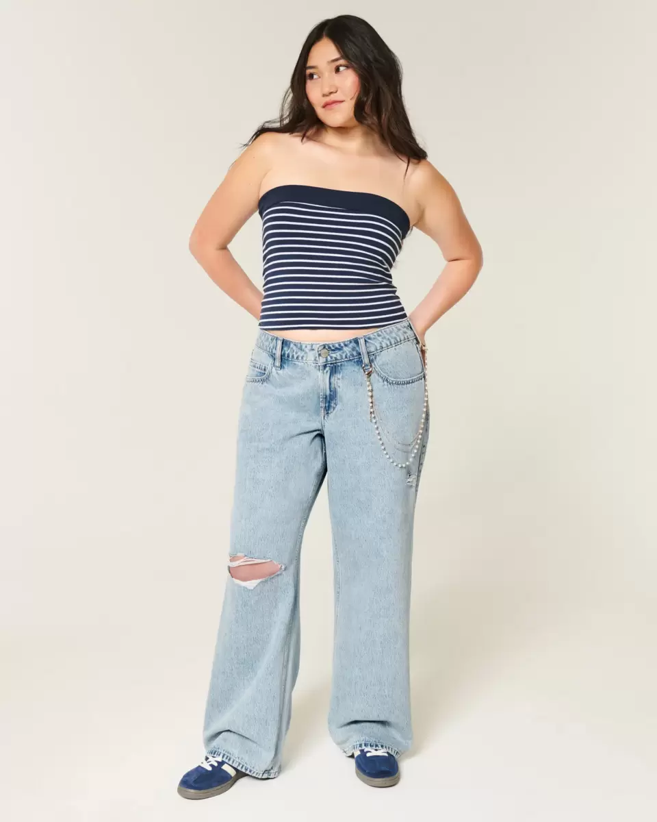 Bekväma jeans i lätt tvätt, designade med säckiga ben och smickrande låg midja. Slitna detaljer. Importerad.