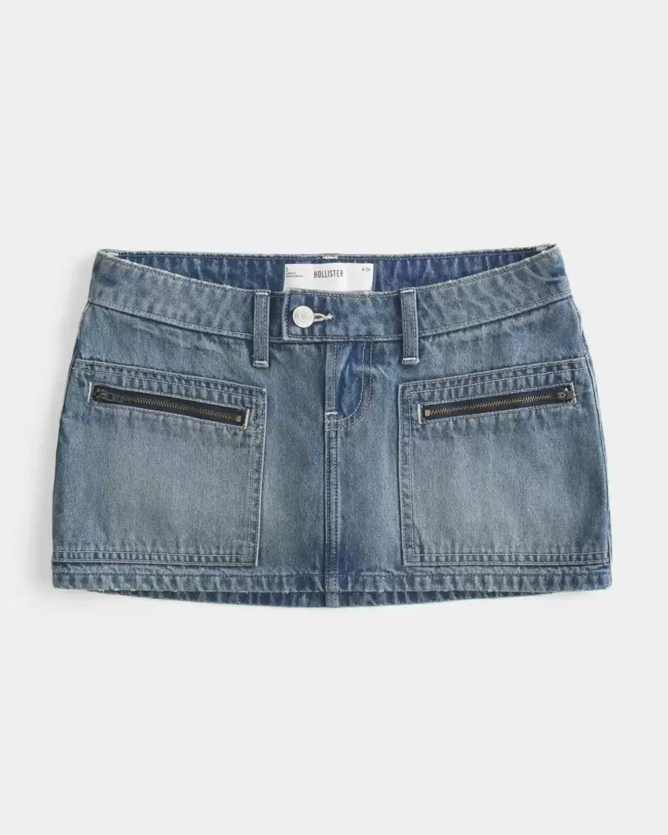 Ett sött micro-minikort i denim designat med en ultralåg midja och dolda stickade shorts. Medium tvätt med blekning och morrhår,. Importerad.