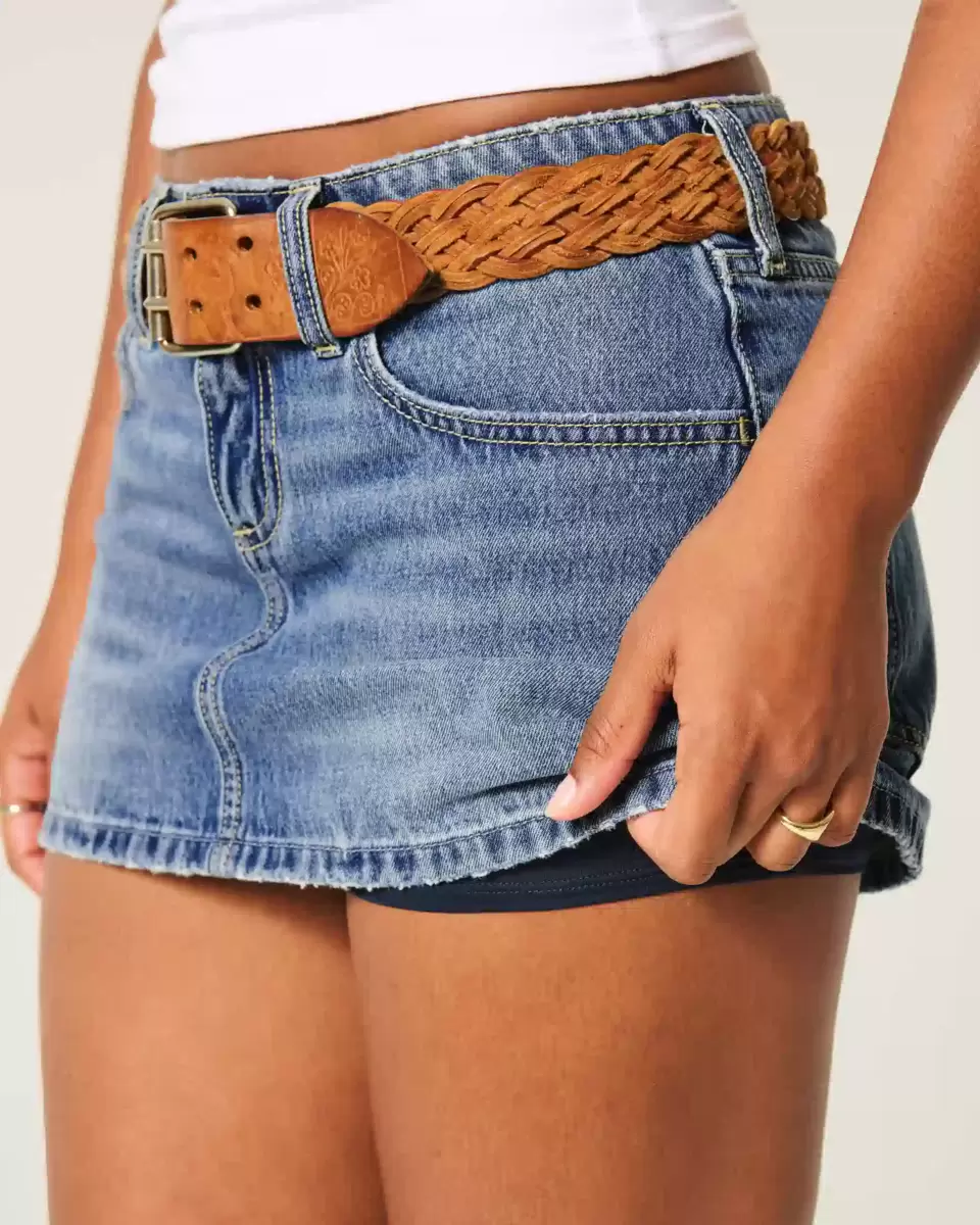 Bli först med att recensera ”Kurvlig låg-Rise broderad rosett Denim Mini Skort”