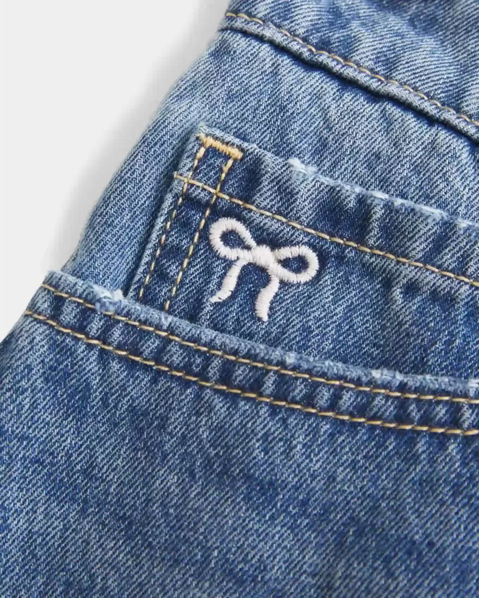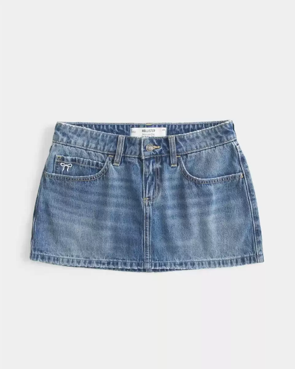 Kurvlig låg-Rise broderad rosett Denim Mini Skort