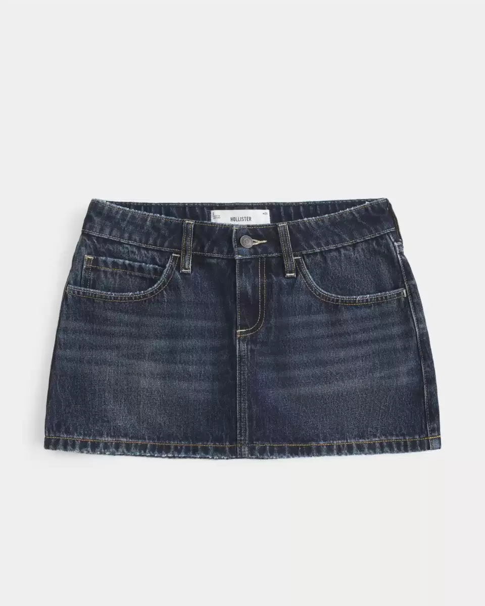 Ett sött minikort i denim designat med en låg midja och dolda stickade shorts. Mörk tvätt med blekning och morrhår Importerad.