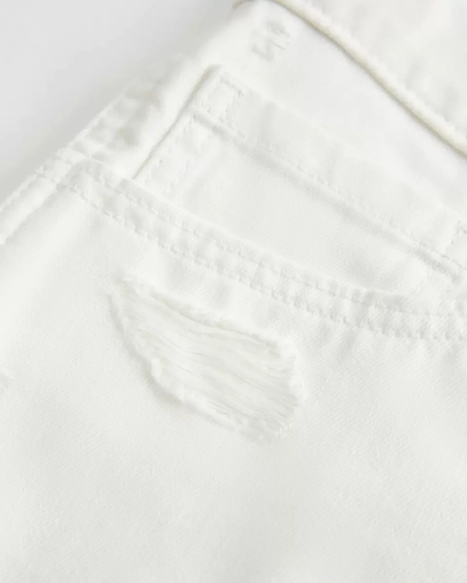 Söta och bekväma minishorts i denim i vitt, med slitna detaljer och råa kanter. Låg midja. Importerad.