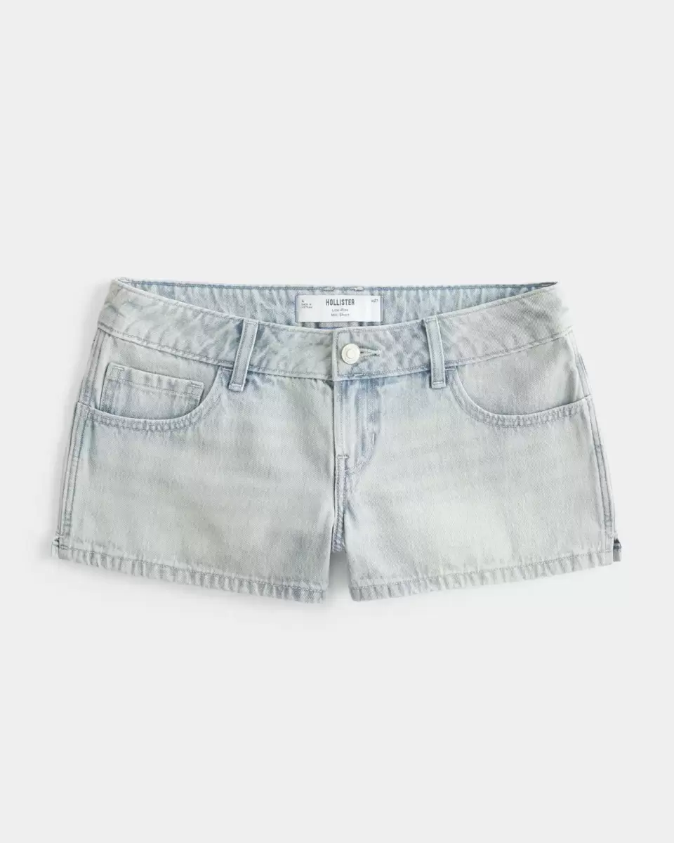 Söta och bekväma minishorts i jeans i lätt tvätt, designade med en låg midja. Blekning, morrhår. Importerad.