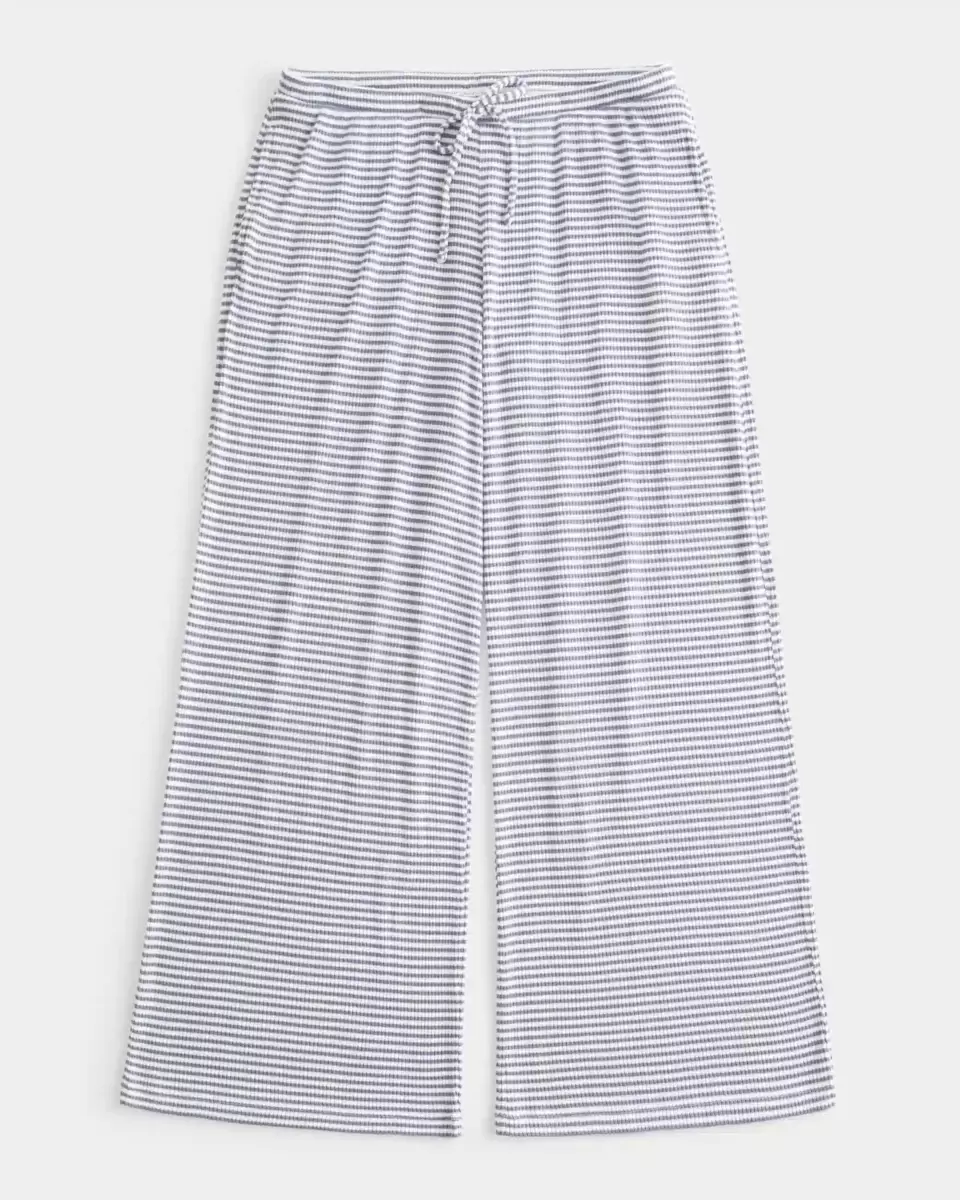 Supersöta och bekväma byxor med vida ben i mysigt ribbad tyg. Dragsko i midjan, fickor.