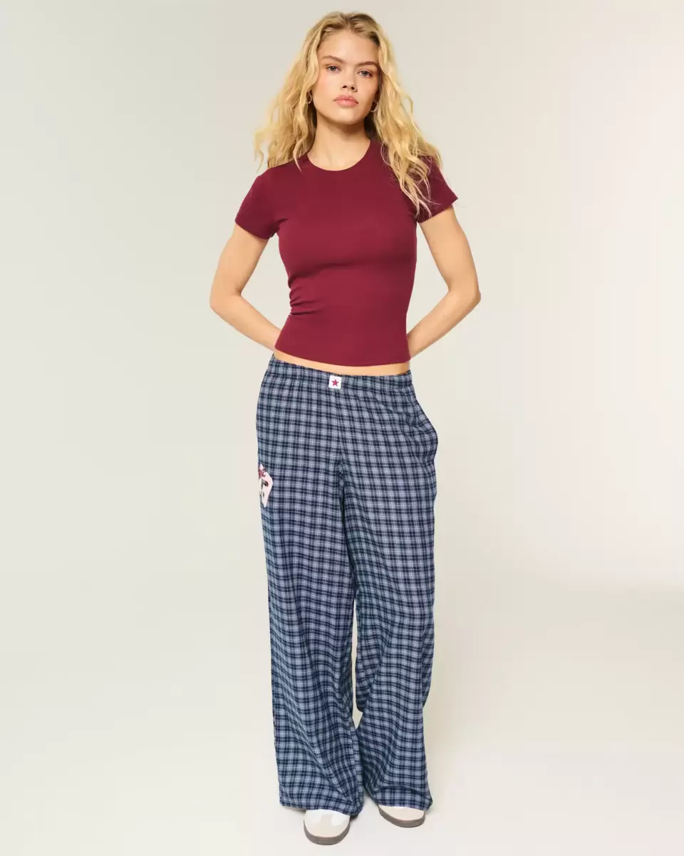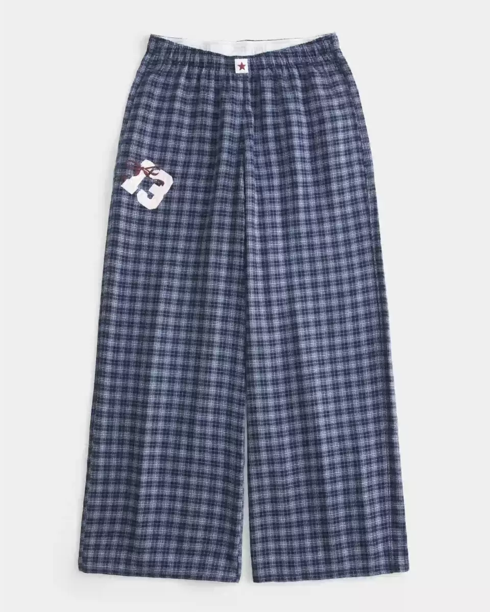 Supermjuka flanellbyxor designade med säckiga ben och justerbar midja med band. Nummergrafisk applikation med broderad rosettdetalj, stjärnfliksdetalj i mitten av midjan, fickor. Importerad.