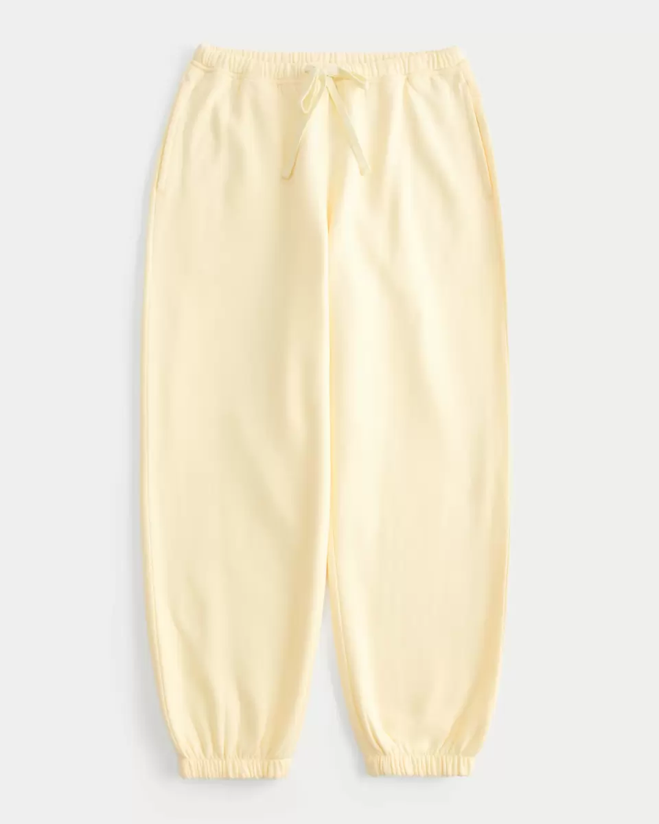 Supermjuka joggingbyxor i fleece designade med säckiga ben, bandade fållar och dragsko i midjan. Fickor. Importerad.