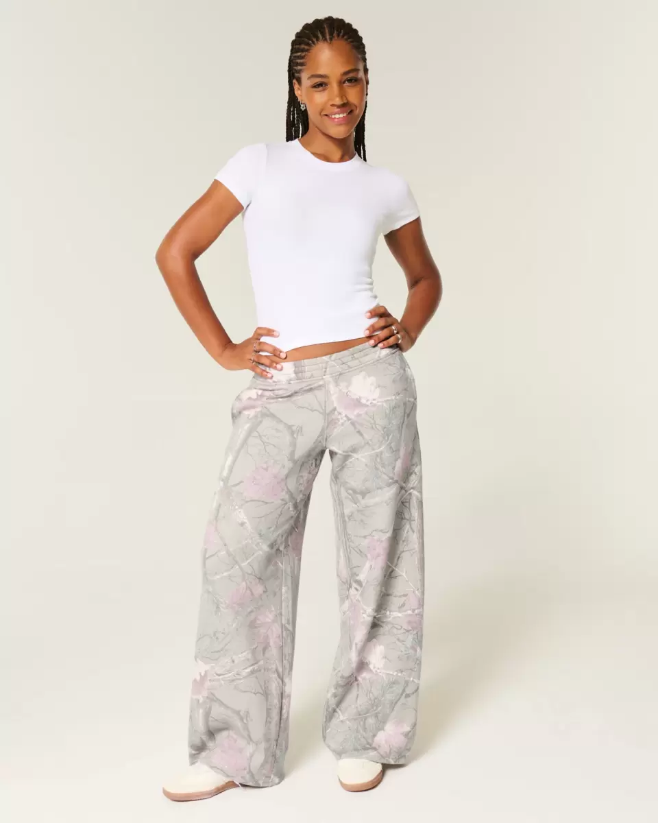 Supermjuka träningsbyxor i fleece designade med säckiga ben och bandad midja. Framfickor, heltäckande camomönster. Importerad.