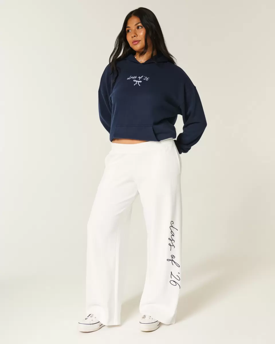 Supermjuka träningsbyxor i fleece designade med säckiga ben och bandad midja. Framfickor, grafiskt broderi av klass ’26.
