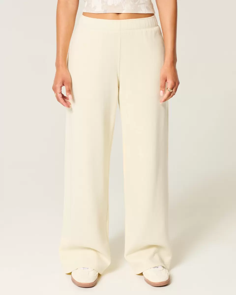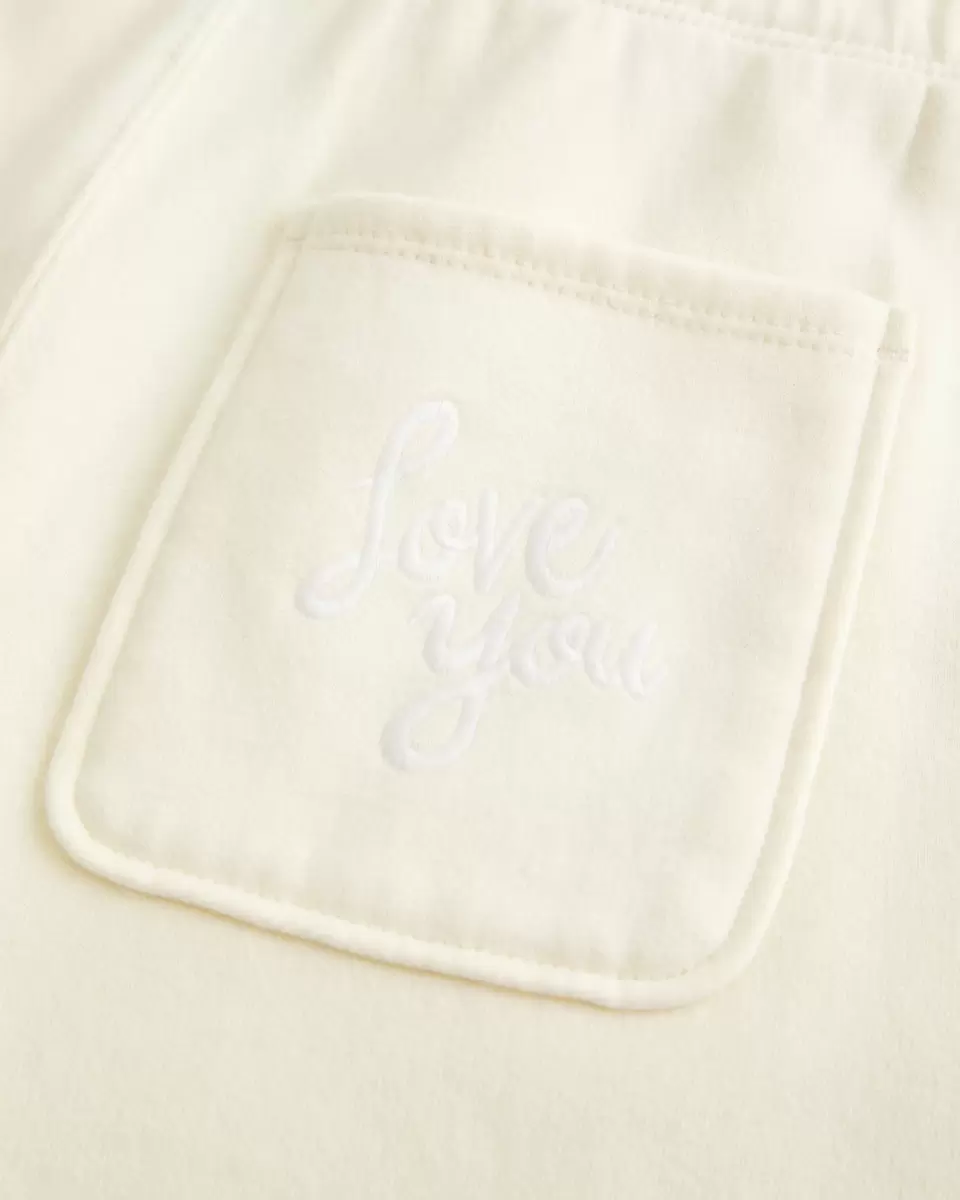 Supermjuka träningsbyxor i fleece designade med breda ben och bandad midja. Love You grafiskt broderi på bakfickan. Importerad.