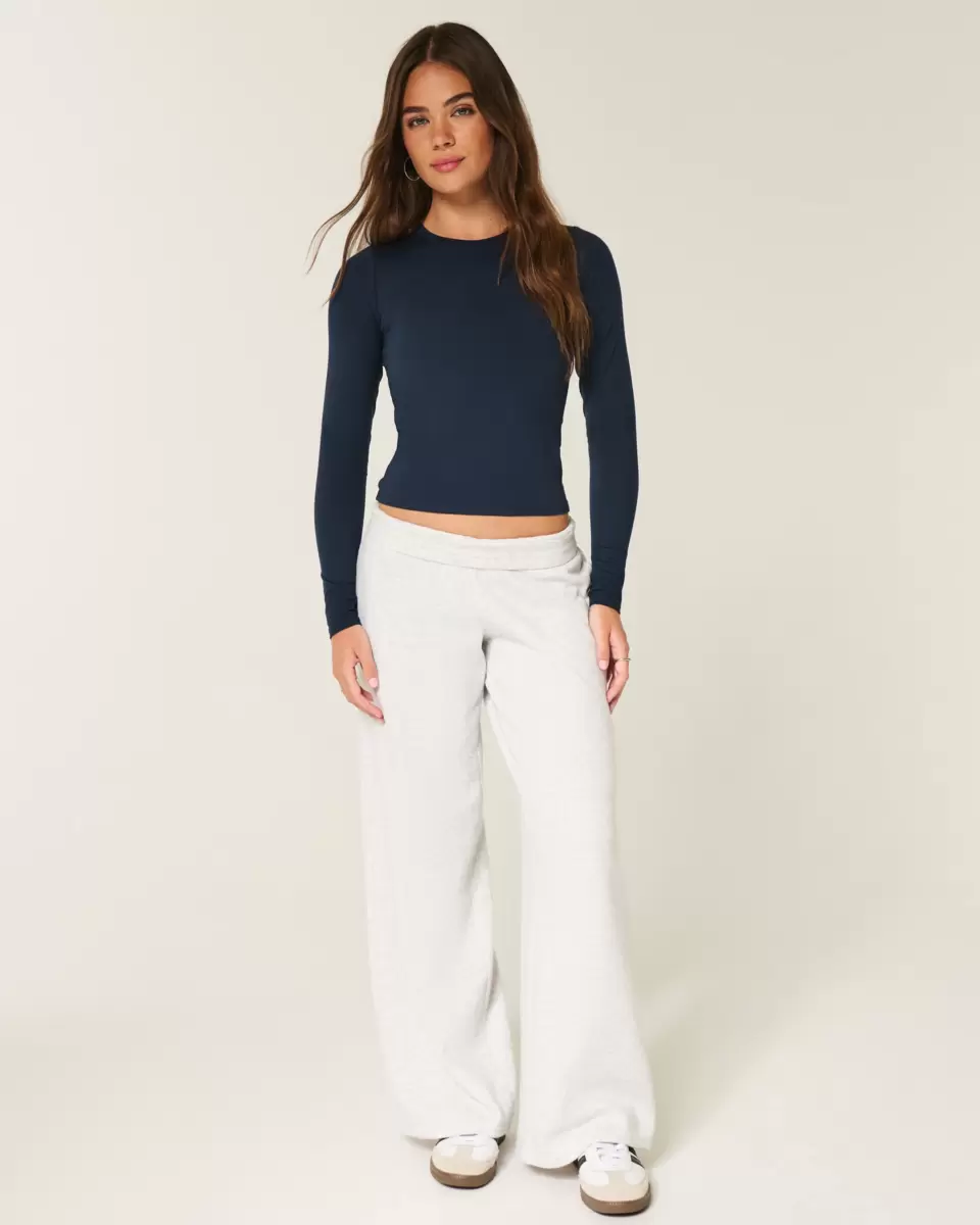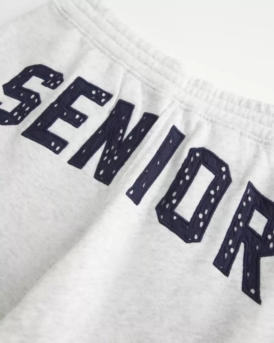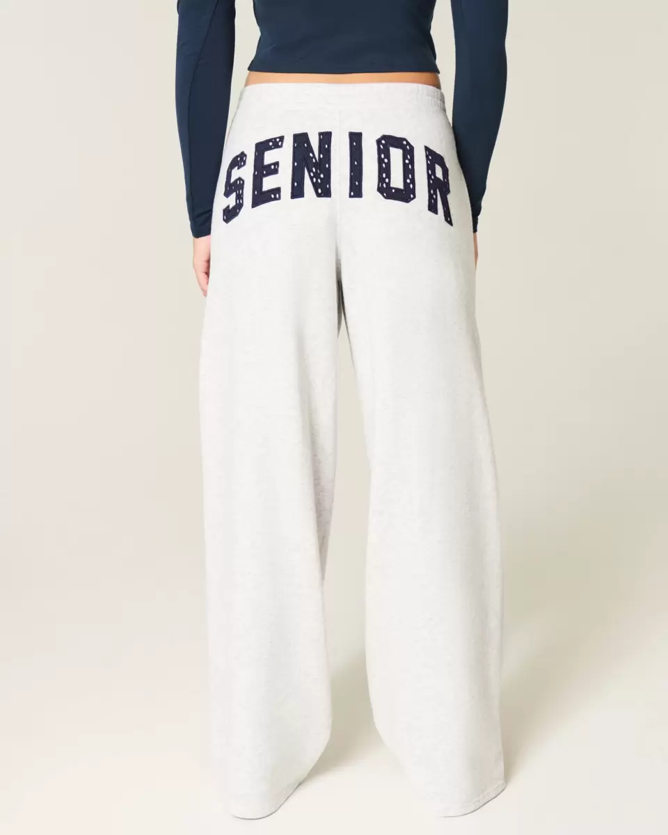Supermjuka träningsbyxor i fleece designade med säckiga ben och bandad midja. Framfickor, Senior grafisk applikation med öljettbroderi bak.