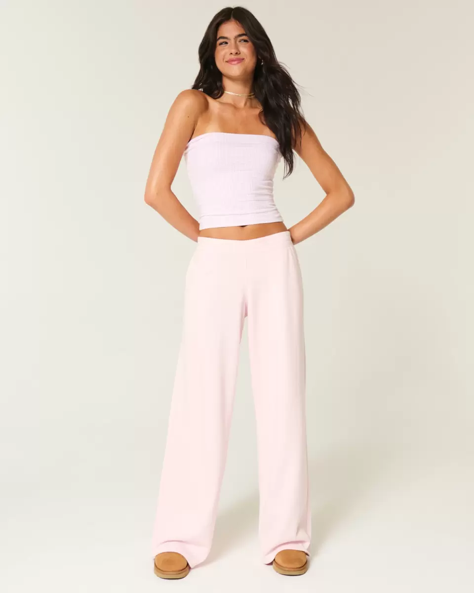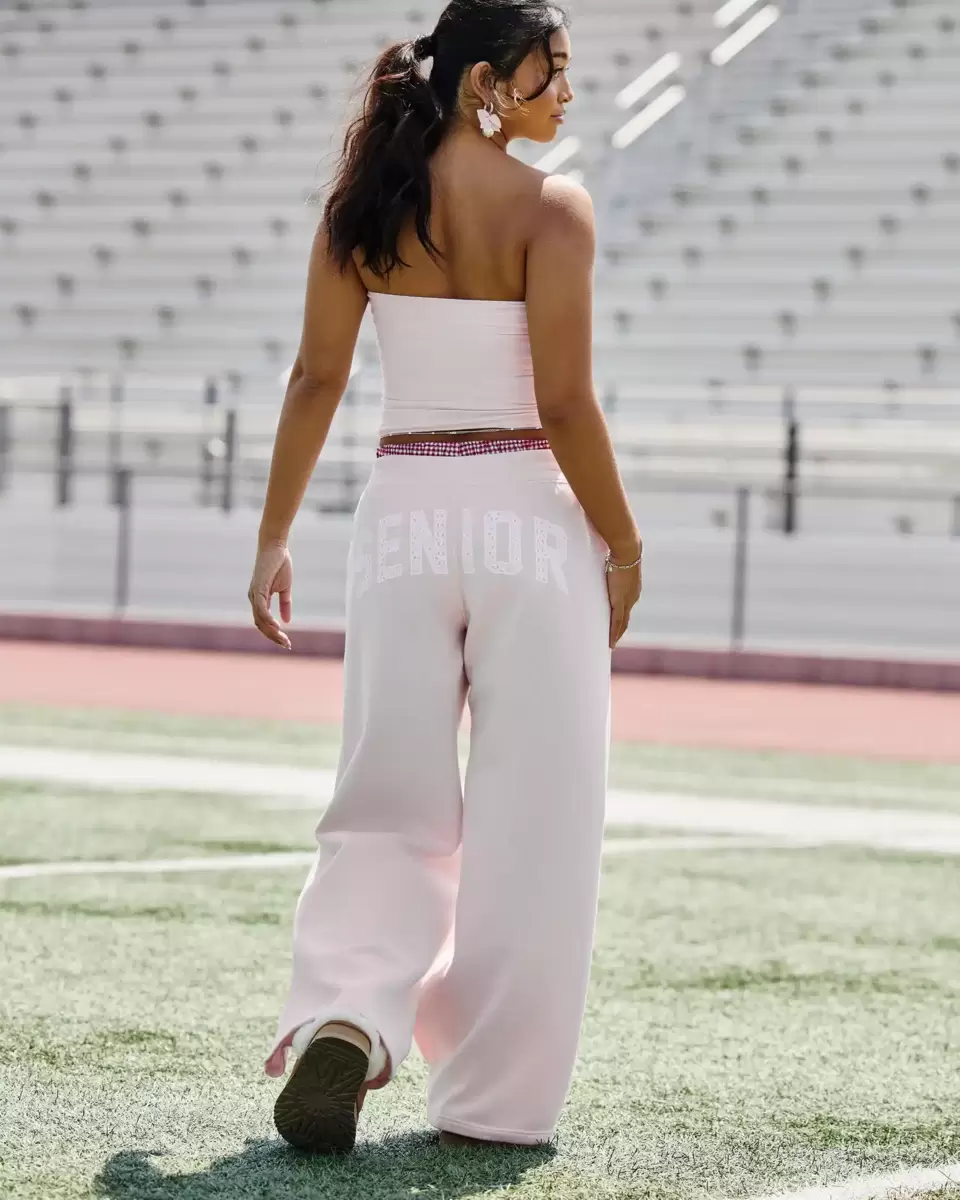 Supermjuka träningsbyxor i fleece designade med säckiga ben och bandad midja. Framfickor, Senior grafisk applikation med öljettbroderi bak. Importerad.