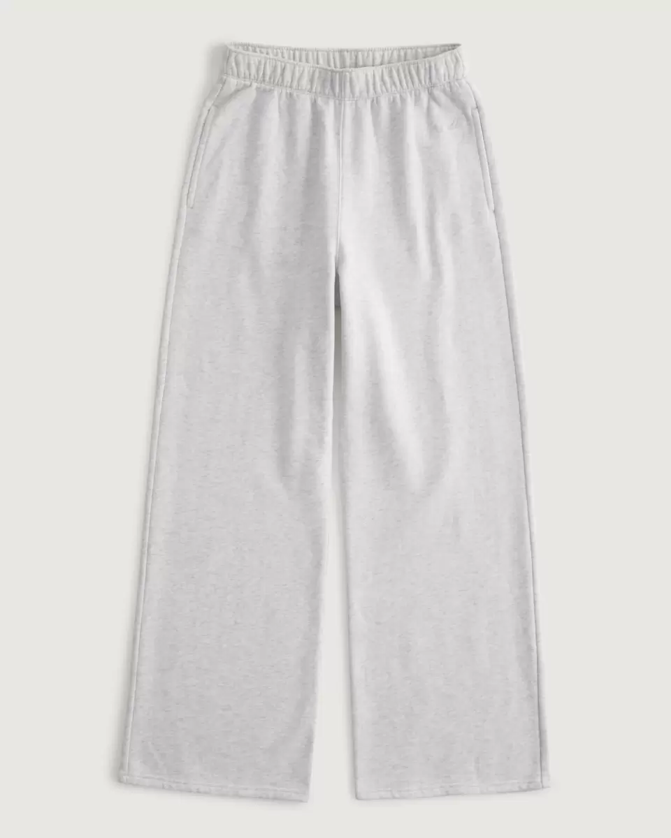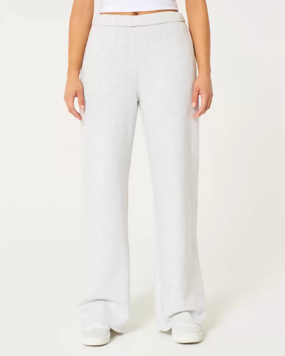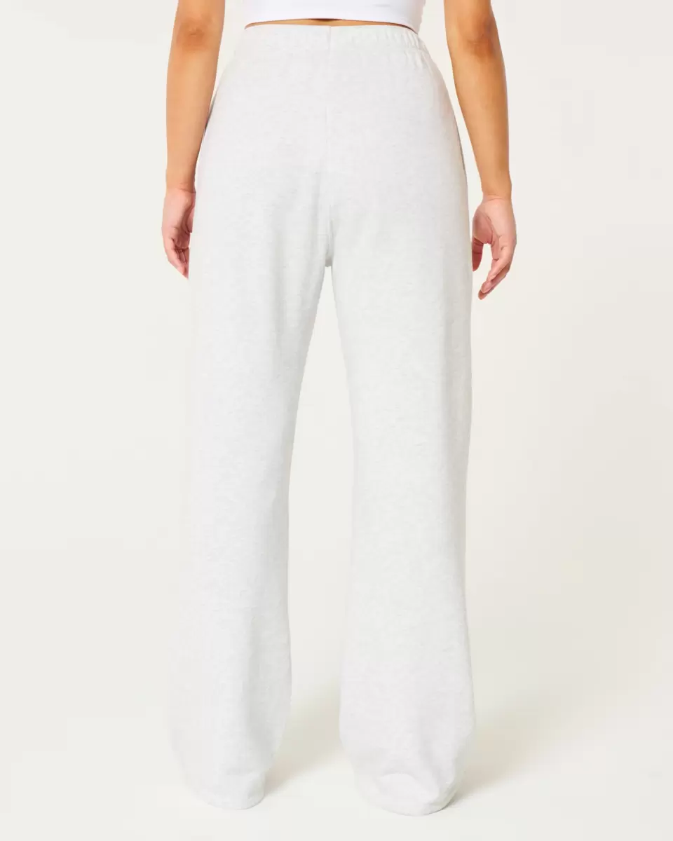 Dessa mysiga byxor med vida ben är gjorda av supermjukt fleecetyg och har en bandad midja, fickor och en broderad logotyp nära midjan.
