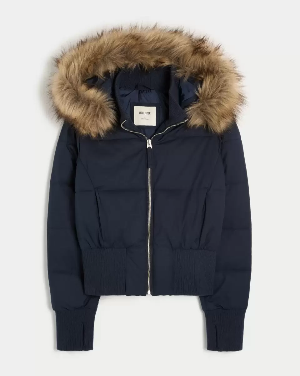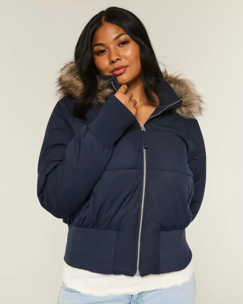 En mysig pufferjacka designad med quiltade kanaler, bandfållar och en luva med fuskpäls. Mock-neck krage, tumöppningar vid ärmslut, full dragkedja, fickor. Importerad.
