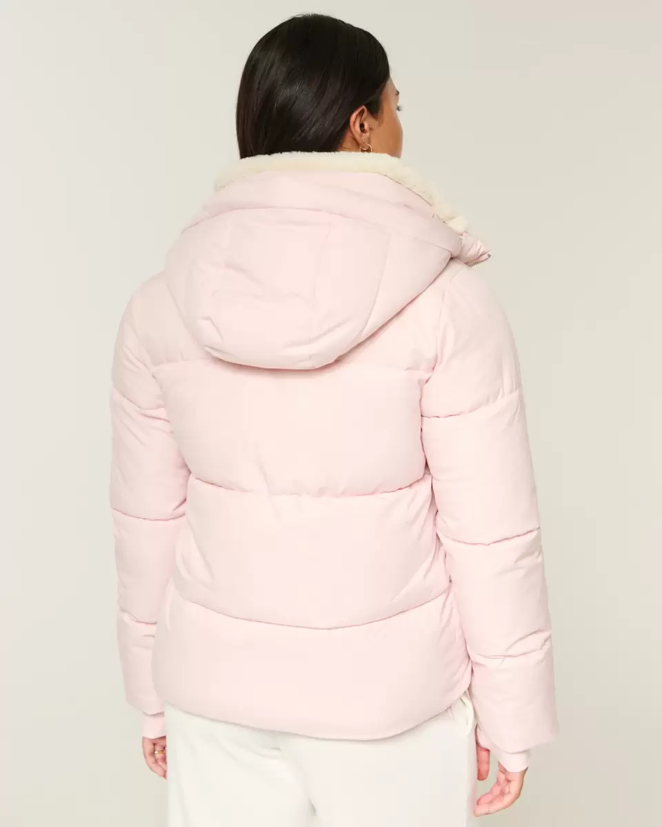 Din nya favoritjacka har mysigt foder i fuskpäls, en mock-halskrage och fuskfodrad huva. Quiltade kanaler, framfickor med dragkedjor, stormmanschetter med tumöppningar.