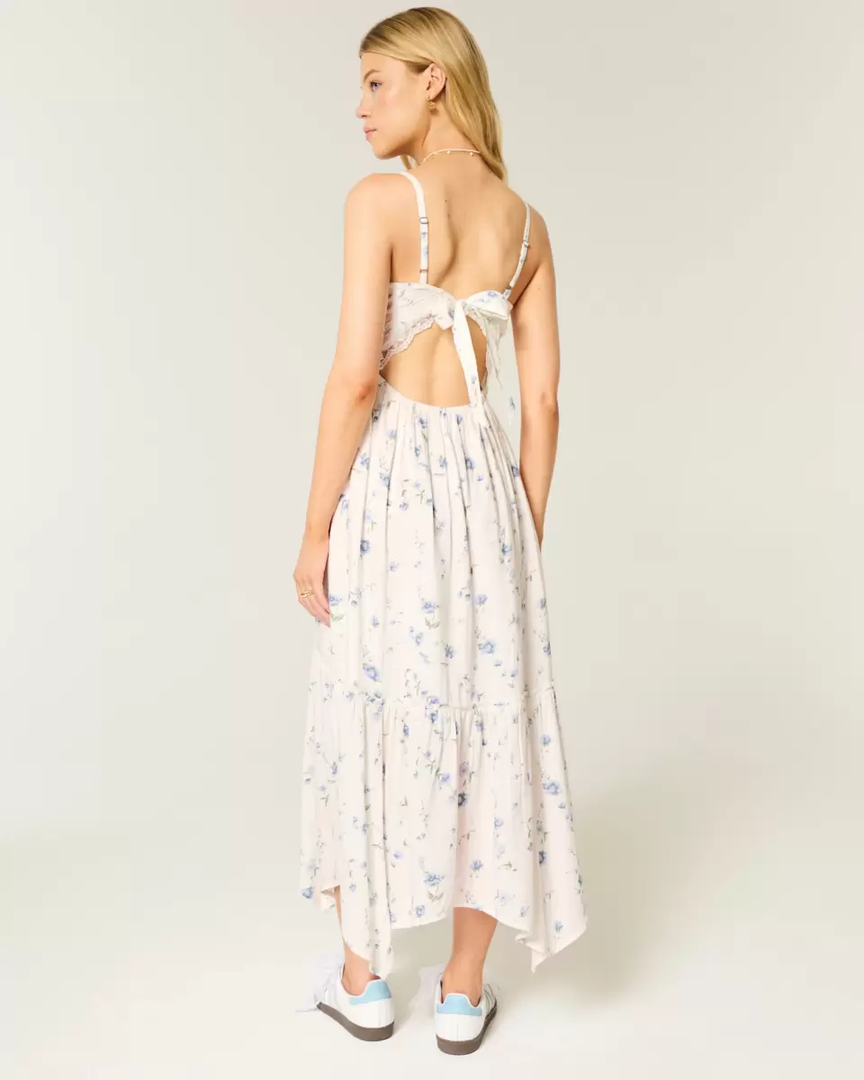Flytig och supermjuk, den här maxilånga klänningen har en detalj i nederkant och rynkade detaljer genom bysten. Justerbara remmar. Importerad.