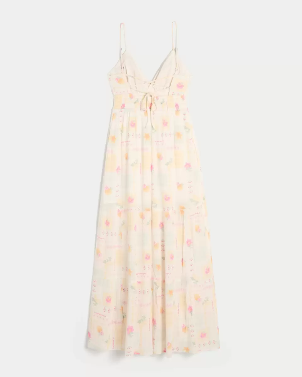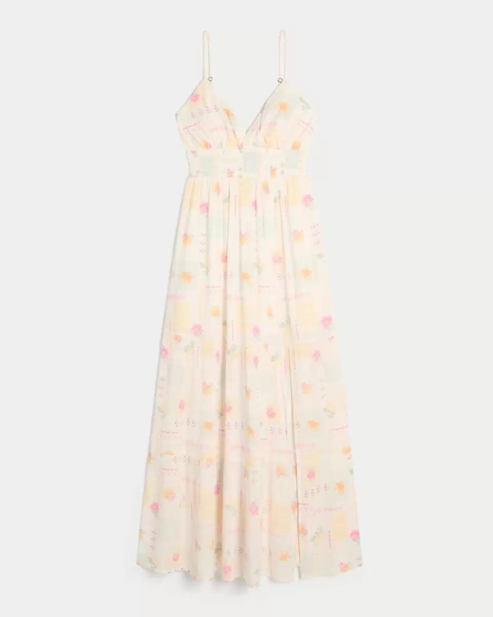 Denna vackra och supermjuka maxilånga klänning har ett heltäckande mönster. Delad fålldetalj, justerbara remmar, mjuk smockad midja. Importerad.