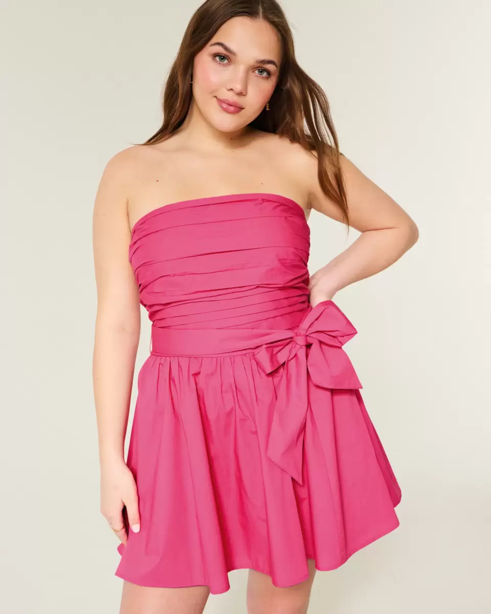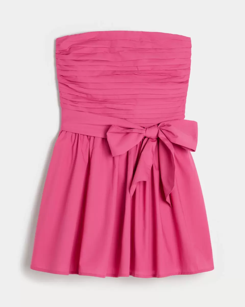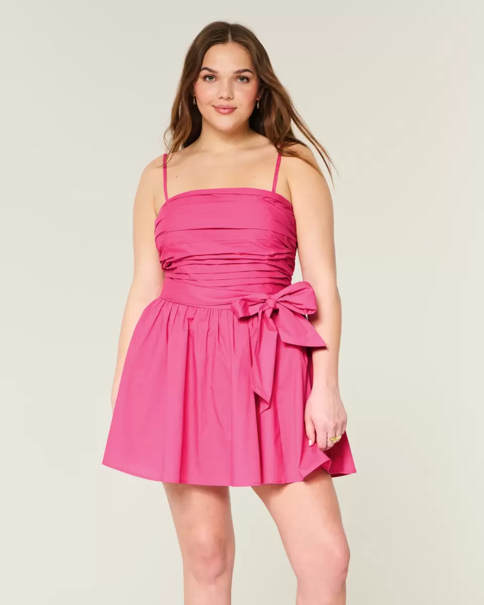 Flytig och flirtig, den här Y2K-inspirerade klänningen har en mjuk smockad rygg, knytband med rosett i midjan, inbyggda badrumsvänliga shorts, fickor och avtagbara axelband. Importerad.