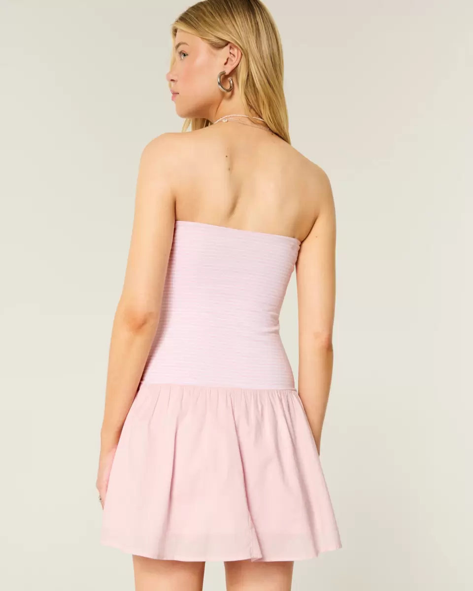Axelbandslös stickad vävd miniklänning med drop-waist