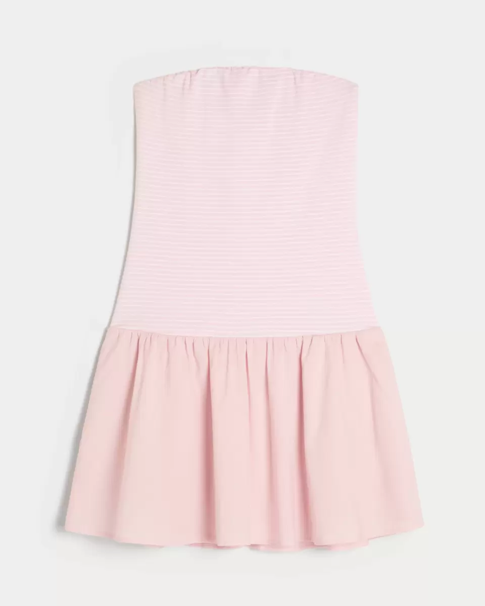 En superbekväm miniklänning med axelbandslös midja med en mjuk och stretchig bomullsblandning och en flytande kjol i vävd blandning. Inbyggda shorts, fickor. Importerad.
