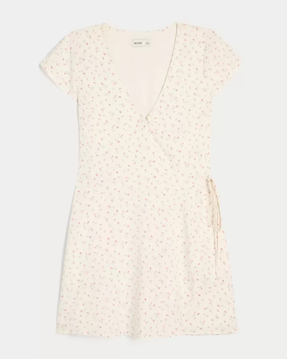 Denna vackra, supermjuka klänning har en omlott-stil framtill och v-ringning. Knytdetalj i sidan, korta ärmar. Importerad.
