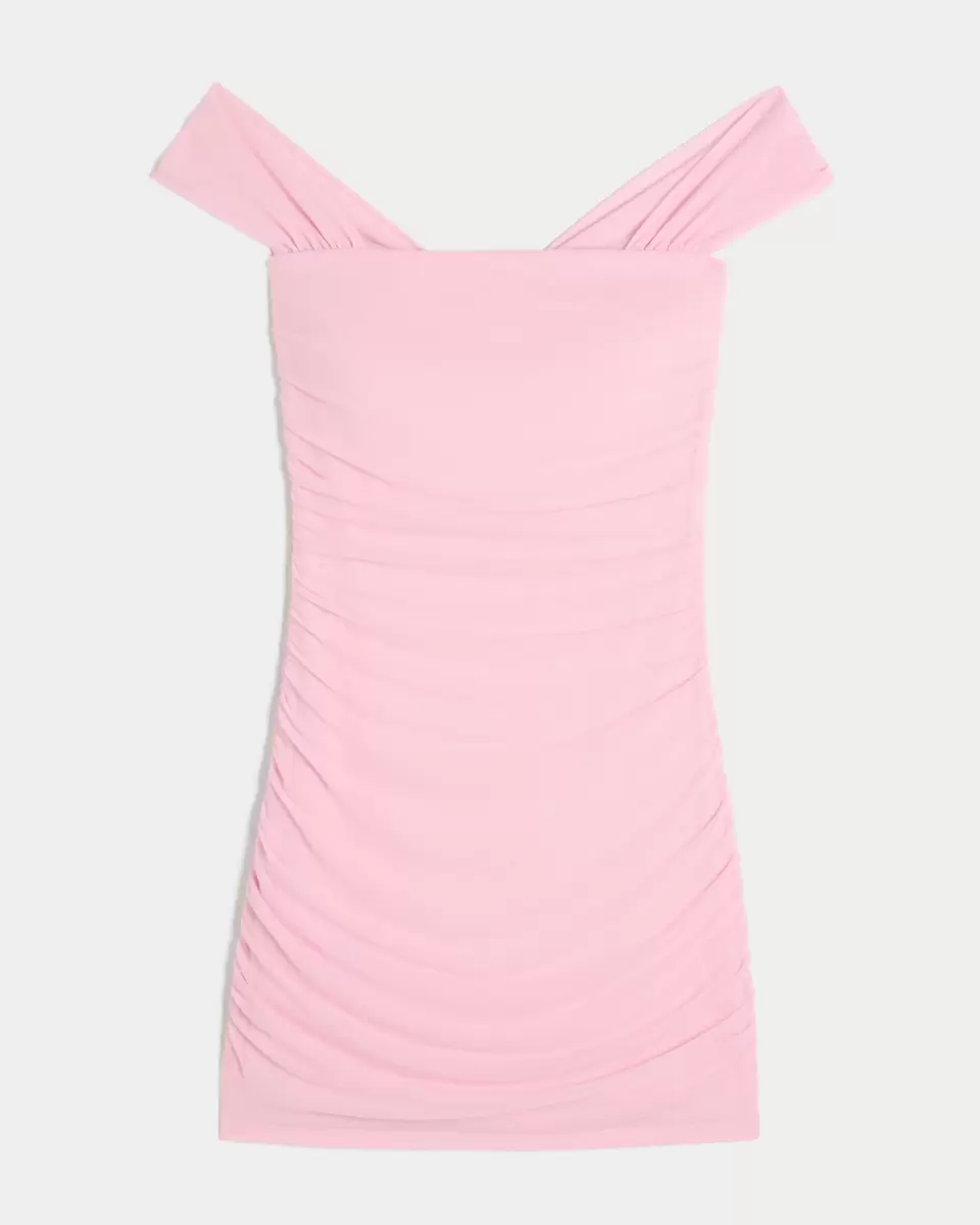 En vacker bodyconklänning i mjukt meshtyg, med rynkiga detaljer från topp till botten. Remmar utanför axeln. Importerad.