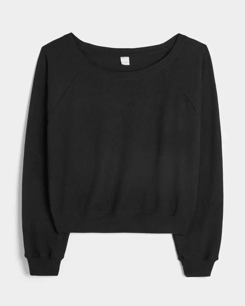 En mysig och supermjuk långärmad topp i våffeltyg med off-shoulder-ringning.