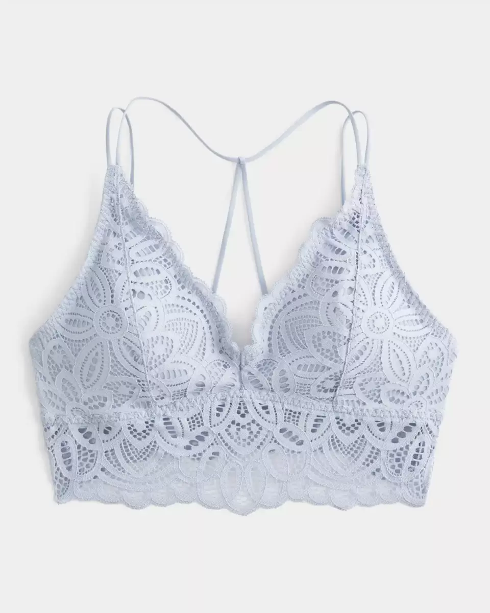 Söt och bekväm, den här braletten har spetsdetaljer i virkad stil och en rem med rygg. Perfekt för lager eller att bära på egen hand! Importerad.