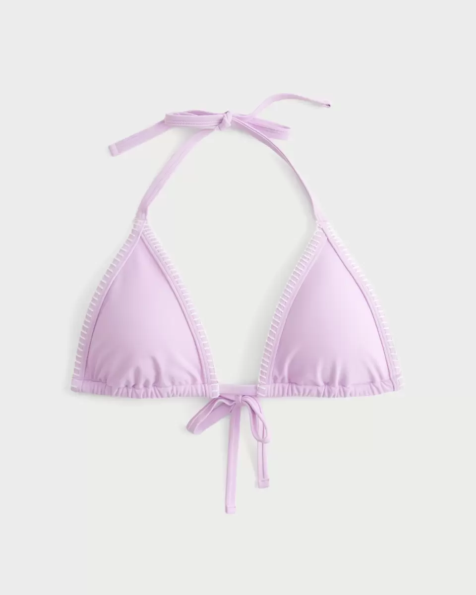 En söt och bekväm triangelbikinitopp gjord av mjukt simtyg, med knytband, grimremmar, avtagbara kuddar och broderade sömmar. Importerad.