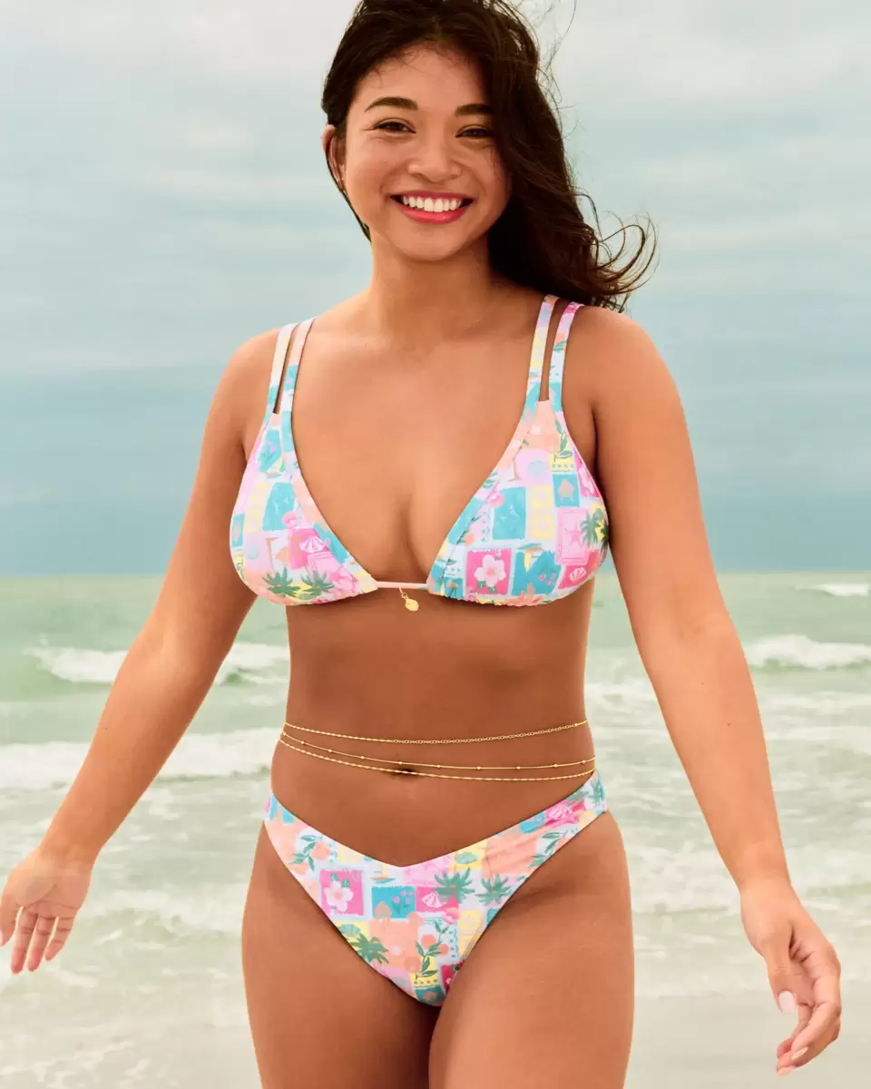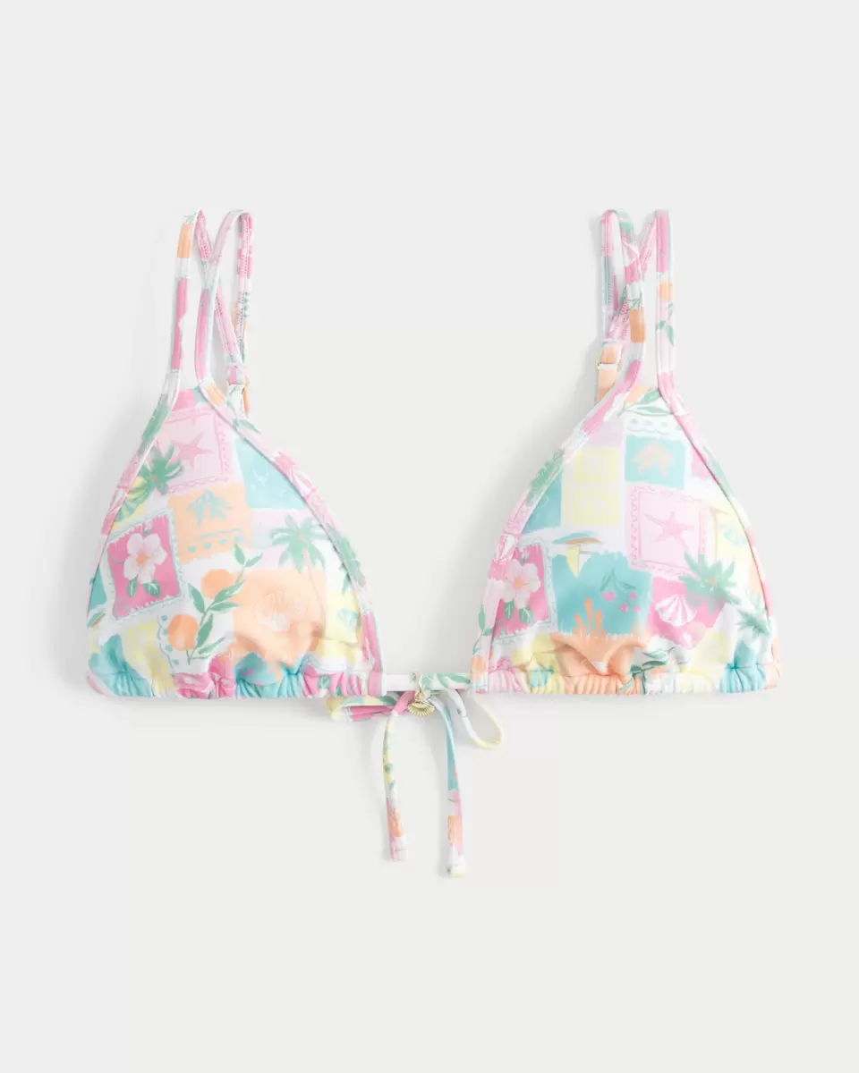 Din nya favoritbikinitopp har dubbla axelband, en knytbandsstängning och söt charmdetalj mitt fram. Avtagbar stoppning, justerbara remmar.
