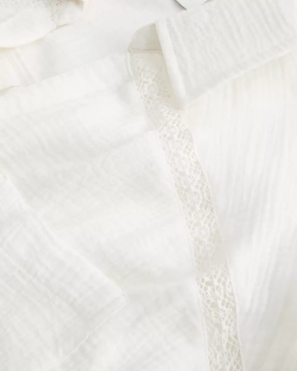 En vacker och supermjuk skjortklänning i texturerat gasväv med hel knappstängning. Vänster bröstficka, krage, långa ärmar, böjd fåll. Importerad.