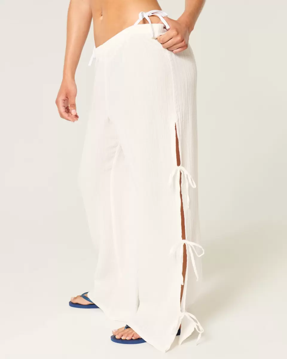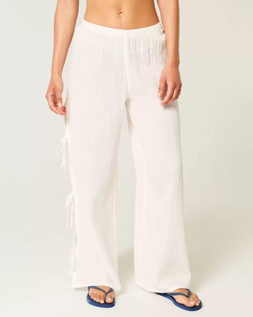 Flystiga och supermjuka byxor designade med en bandad låg midja och breda ben siluett med sidodetaljer. Importerad.