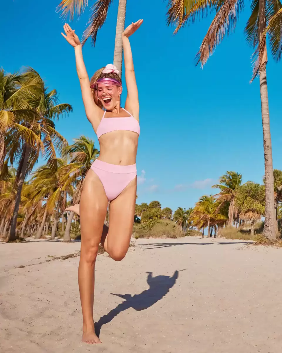 En supersöt bikinitrosa designad med en siluett med höga ben och hög midja. Mjukt ribbad tyg på ena sidan och platt tyg på den andra. Tillverkad av över 80 % återvunnet material. Importerad.