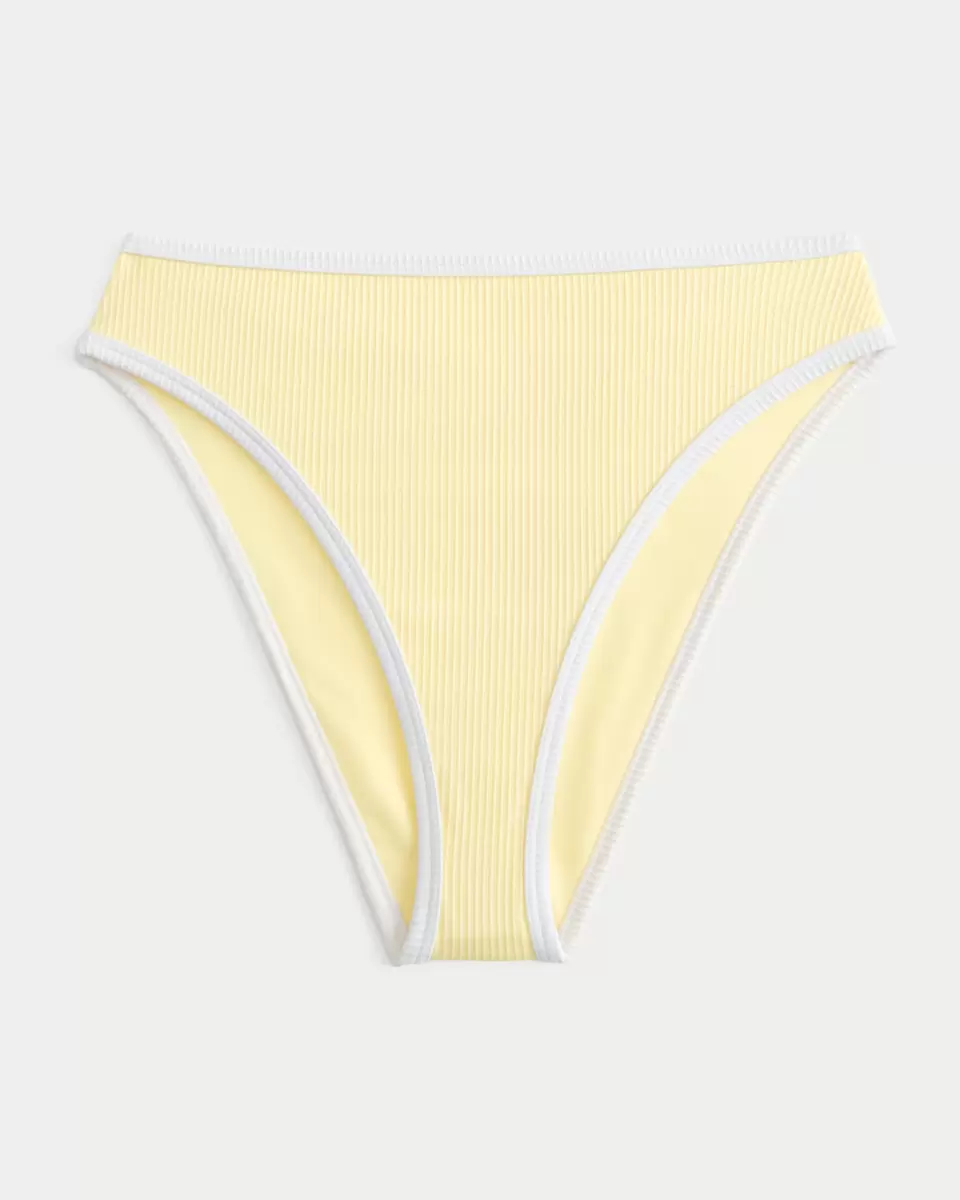 Designad med en smickrande kurvig siluett med hög midja och hög midja, den här söta bikinitrosan har mjukt räfflat simtyg och fräck täckning. Importerad.