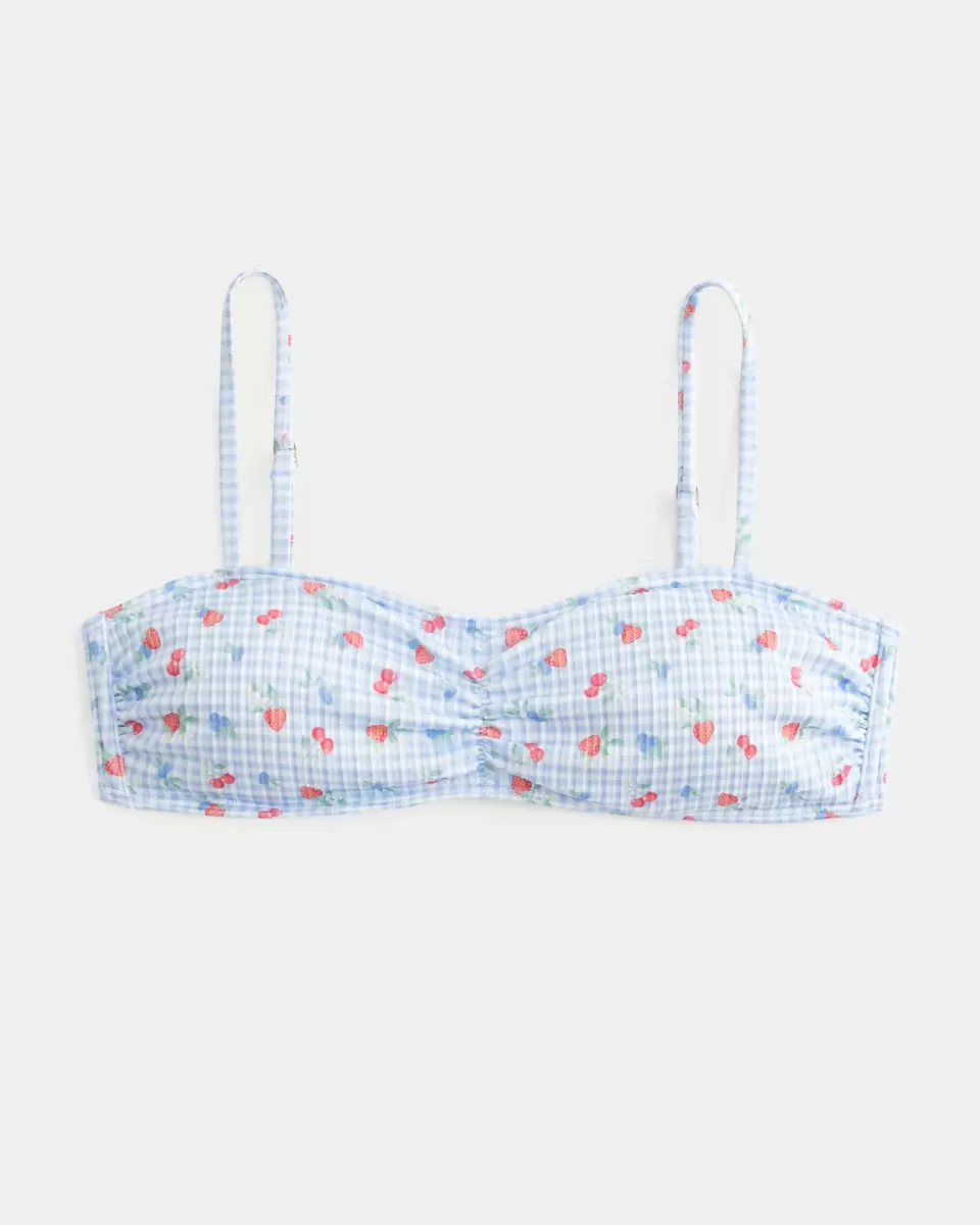 En supersöt bikinitopp i mjukt ribbstickat simtyg med scoop-ringning och knipade detaljer i mitten. Justerbara remmar.