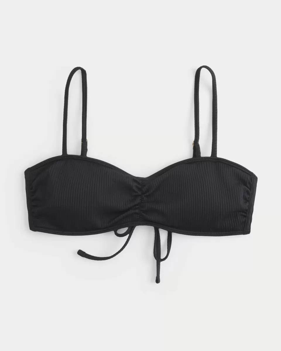 En supersöt bikinitopp i mjukt ribbstickat simtyg med en scoop-ringning och knipade detaljer i mitten. Justerbara remmar, knytband. Importerad.